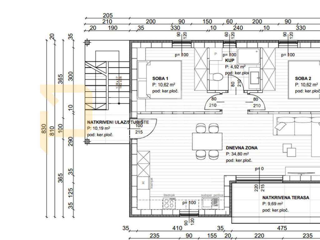 The total living area is 60.96 m, and an additional highlight is the covered terrace of 9.69 m, perfect for relaxing with morning coffee or peaceful evening moments.