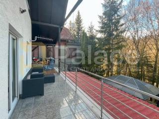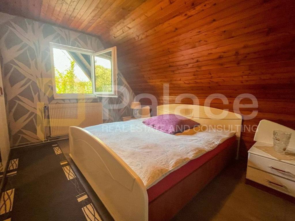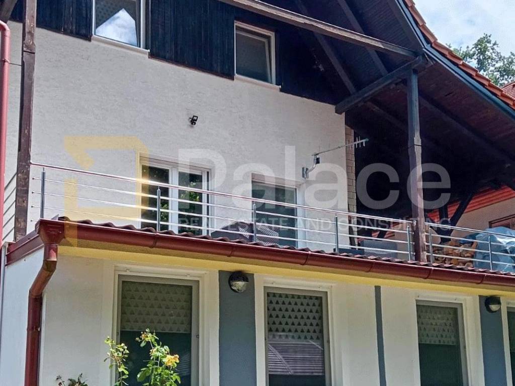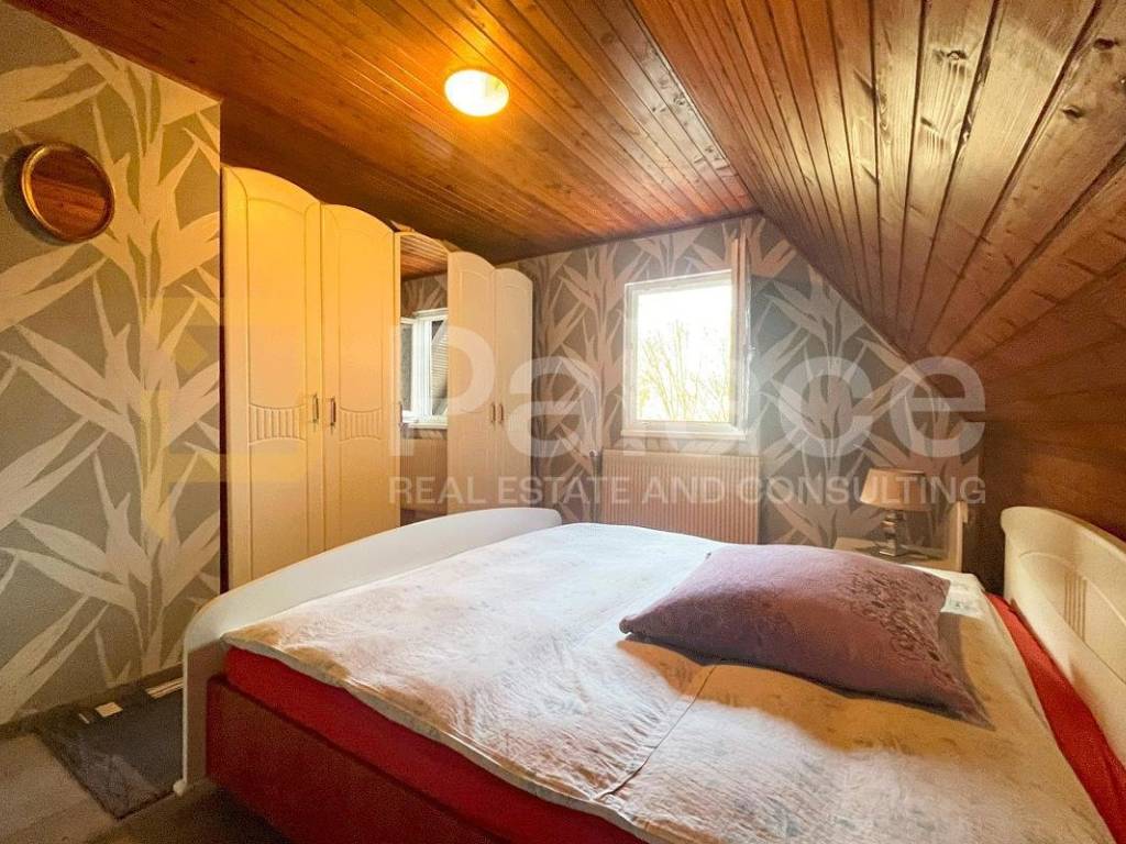 It is fully furnished and consists of 4 floors. In the basement, there is a living room with a fireplace and a bar, a small kitchen and dining room, and an exit to the courtyard. The ground floor is spacious with a large living room, kitchen, and access to a terrace with a beautiful view of the castle and Hotel Trakošćan. On the first floor, there are two bedrooms and a bathroom. Another bedroom is located in the attic. The house has two living rooms, three bedrooms, two kitchens, one bathroom, and two additional toilets in the basement and ground floor.