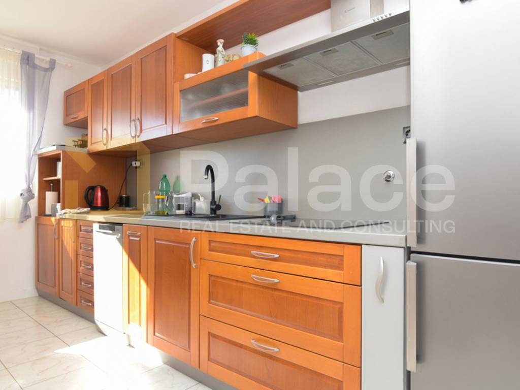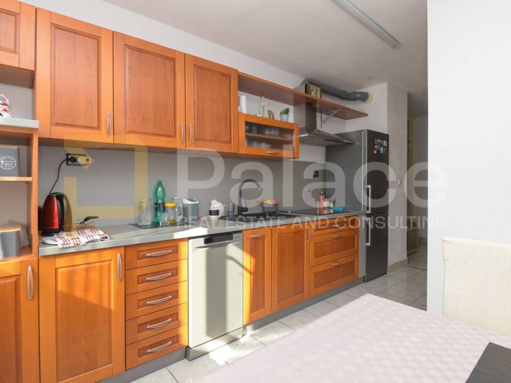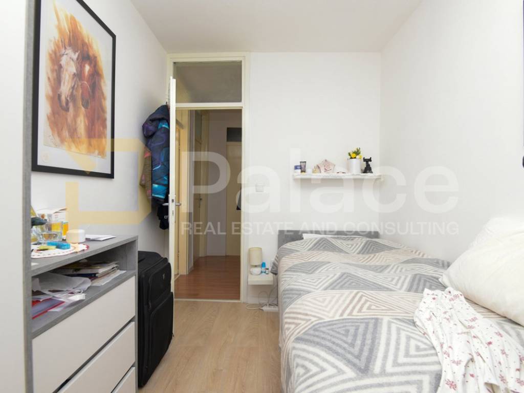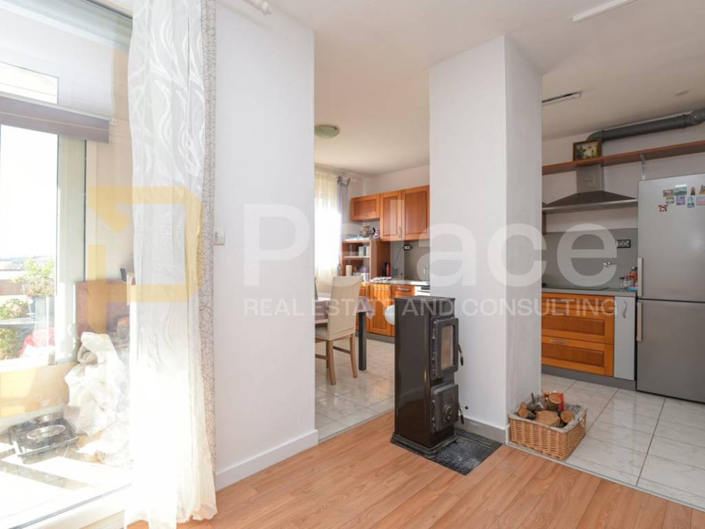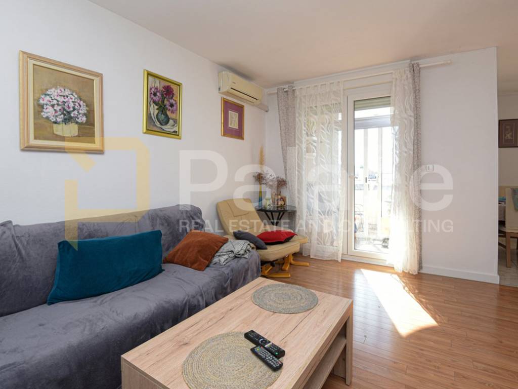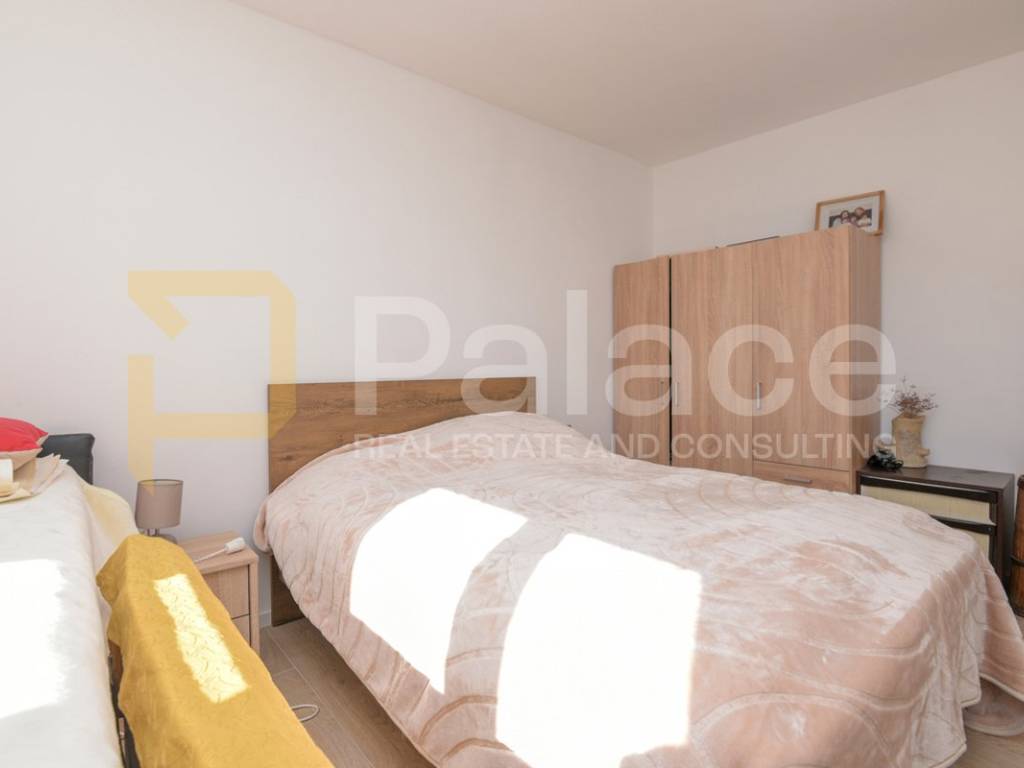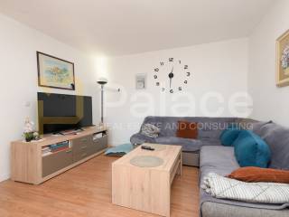 The apartment consists of an entrance area, storage room, kitchen with dining area, living room with access to a glazed loggia and open balcony, 3 bedrooms, one of which is very spacious, a bathroom, and a hallway. The apartment also includes a wood storage room of approx. 7-8 m2 in the building's basement. The apartment was renovated 2 years ago, is harmoniously and fully furnished, and equipped with all necessary appliances. The living room has an air conditioning unit for cooling, and besides the air conditioning, a wood stove can be used for heating. The windows have PVC joinery with mosquito nets and blinds. The floors feature high-quality parquet and ceramic tiles.