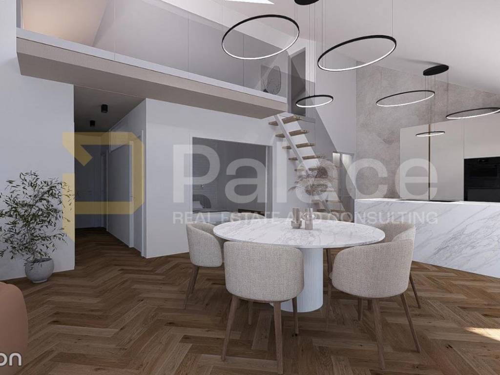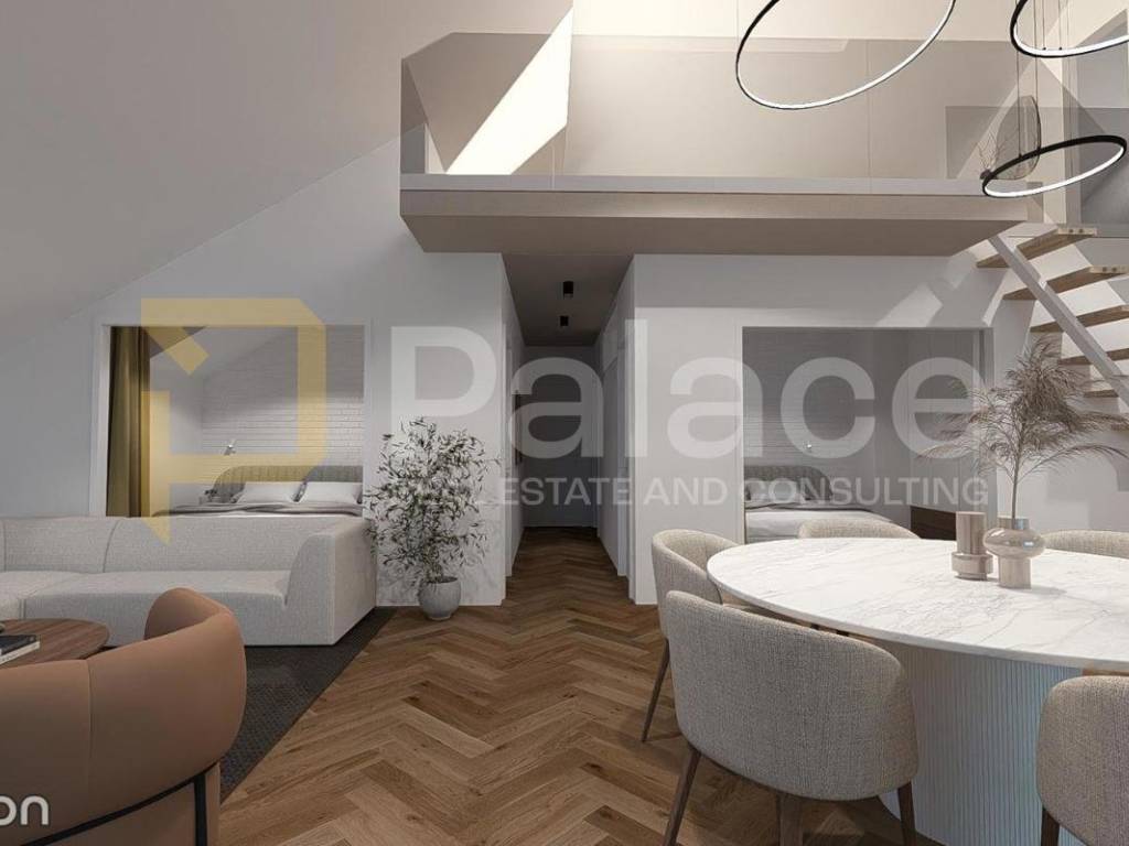 On the upper floor of the apartment, there is a gallery, perfect for relaxation and socializing. Every corner of the apartment is carefully designed, taking into account the luxurious fittings and maximizing the use of all the amenities that the property in this location offers. All rooms are air-conditioned, and the entire apartment is equipped with a underfloor heating system with a heat pump. The apartment also comes with a parking space, and residents have additional parking spaces available in the public area. The landscaping of the building surroundings, as well as the parking spaces, is carried out by the investor.