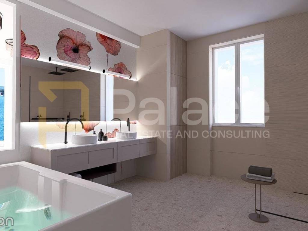 The apartment is located on the third floor of a completely reconstructed building, covering 129 m2, with an accompanying terrace with a gross size of 55 m2. It consists of an open space concept of living room, dining room, and kitchen, three bedrooms, a bathroom, and a toilet. The main bedroom offers a spectacular sea view, and the bathroom with a jacuzzi is accessible from the bedroom. The 55 m2 terrace, perfect for enjoying summer evenings, ideally complements the panoramic view of the city that this apartment offers.