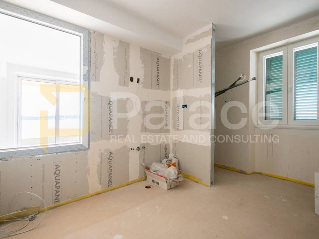 Illuminated, sunny, with access to a large partly covered terrace offering a spectacular view of the Šibenik channel, this apartment represents a unique property in the city. The building, with a total of four floors, has been completely renovated, equipped with an elevator, and is currently nearing completion. All apartments in the building have secured parking around the building, and the investor includes complete exterior landscaping in the price.