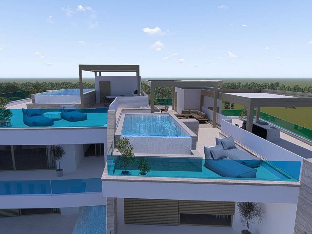 For sale is a luxurious two-bedroom apartment with a sea view in a unique new construction project in Grebaštica near Šibenik. Due to its special design and spectacular content, this project is certainly a unique opportunity to buy. What makes this project unique and different from other new buildings is that each of the apartments, along with additional facilities, also has its own private pool. The building consists of a basement with garage spaces and storage, and a ground floor and two floors with a total of nine apartments.