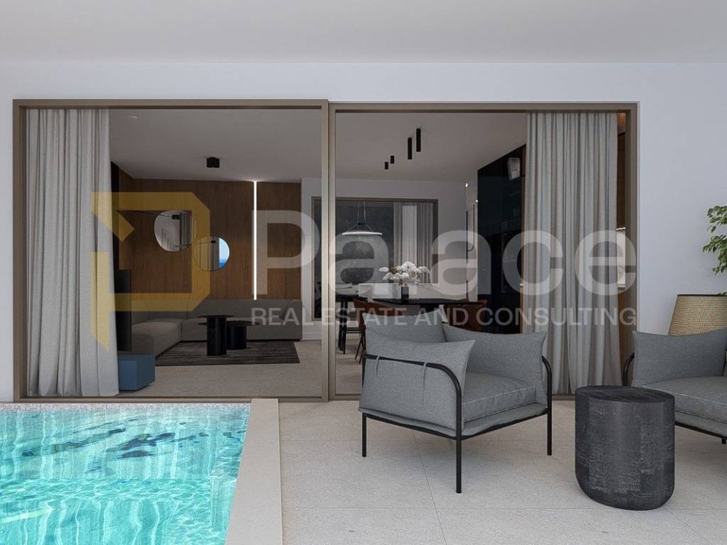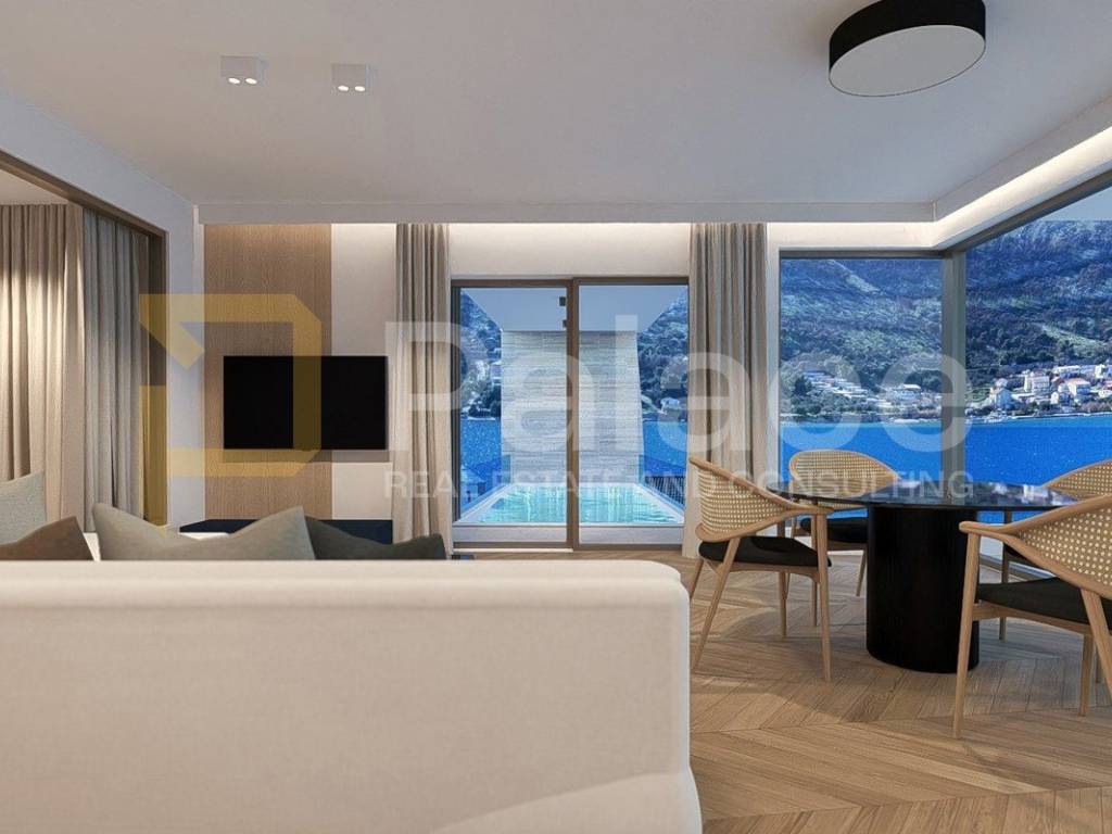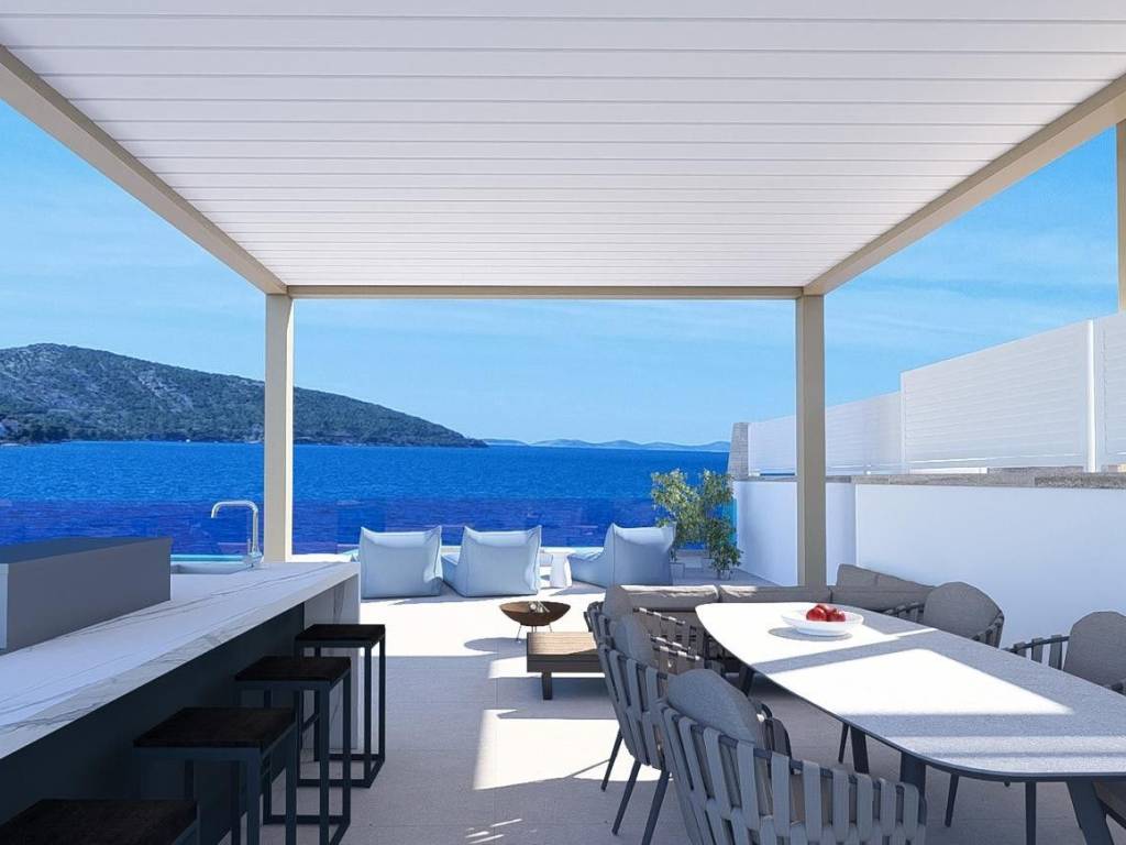 Located on the coast, only 40 m from the sea, with a private pool and luxurious equipment, this apartment offers the future owner of the snail the maximum benefit of enjoyment. The building is built according to high construction standards, quality materials, and among other things, the apartments are equipped with PVC carpentry with large sliding walls, air-conditioned rooms, electric blinds with mosquito nets, underfloor heating, etc. The entire building is connected to an elevator.