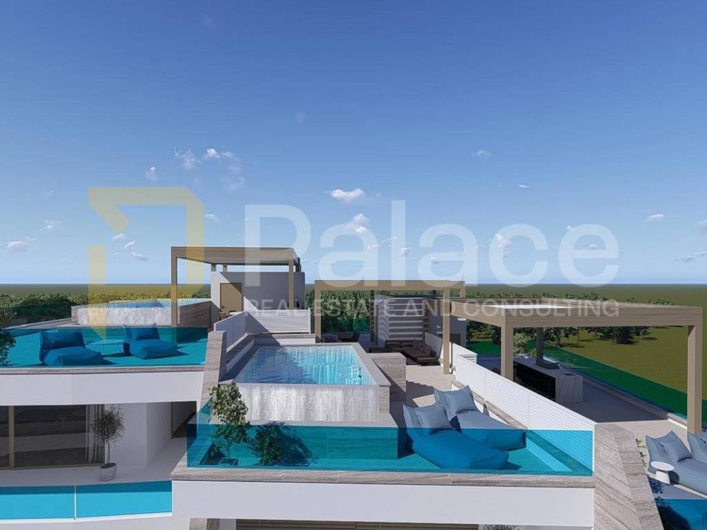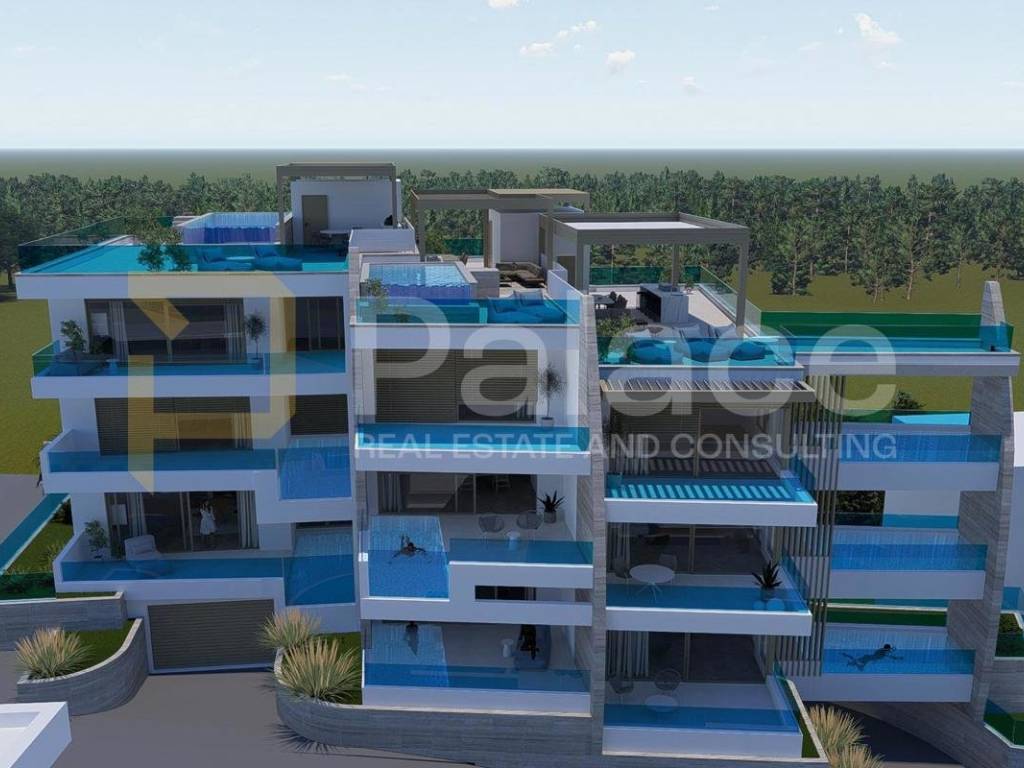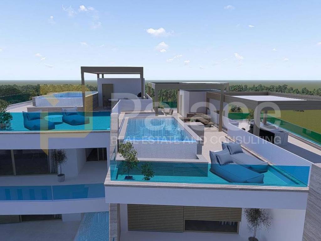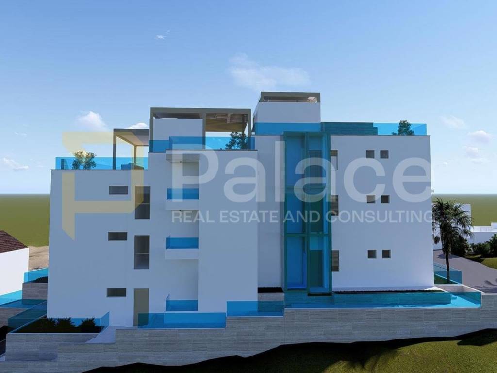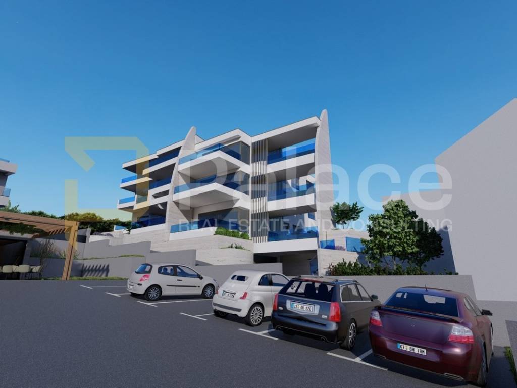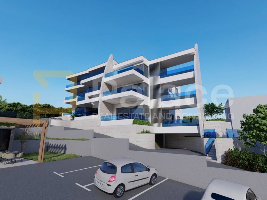 For sale is a luxurious two-bedroom apartment with a sea view in a unique new construction project in Grebaštica near Šibenik. Due to its special design and spectacular features, this project is definitely a unique opportunity for purchase. What makes this project unique and different from others is that each apartment, in addition to extra amenities, also has its own private pool. The building consists of a basement with garages and storage rooms, ground floor, and two floors with a total of nine apartments.