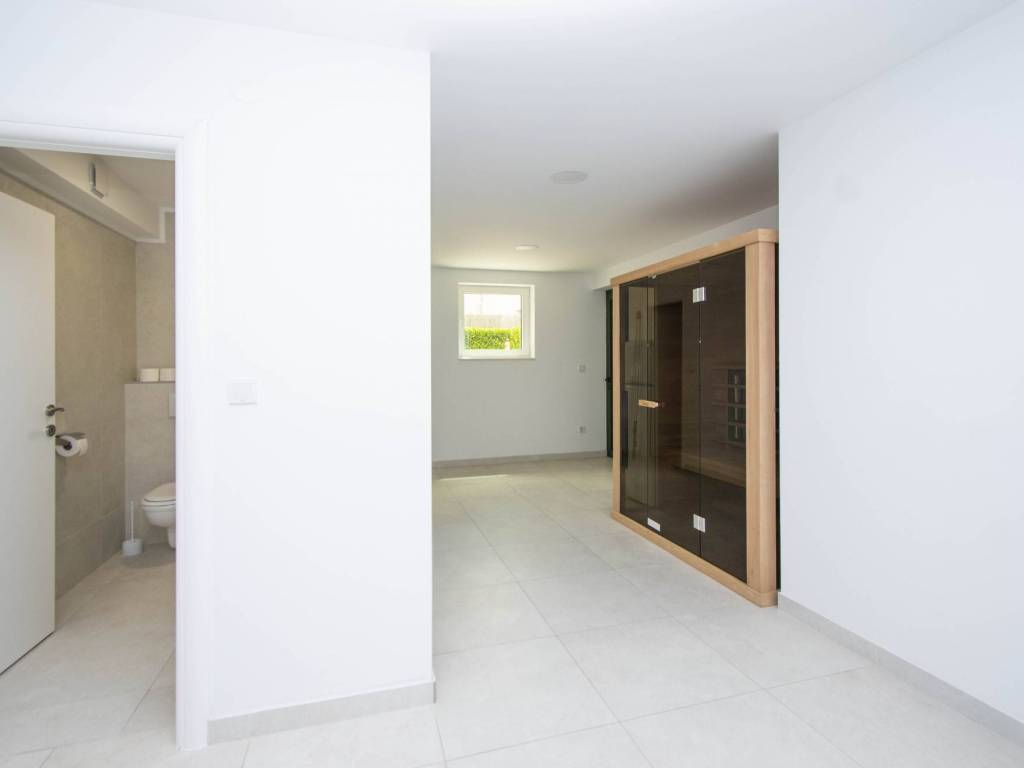 In the basement there is a living room, a kitchen, a room, a bathroom, a laundry room, a sauna and a space intended for a home gym.