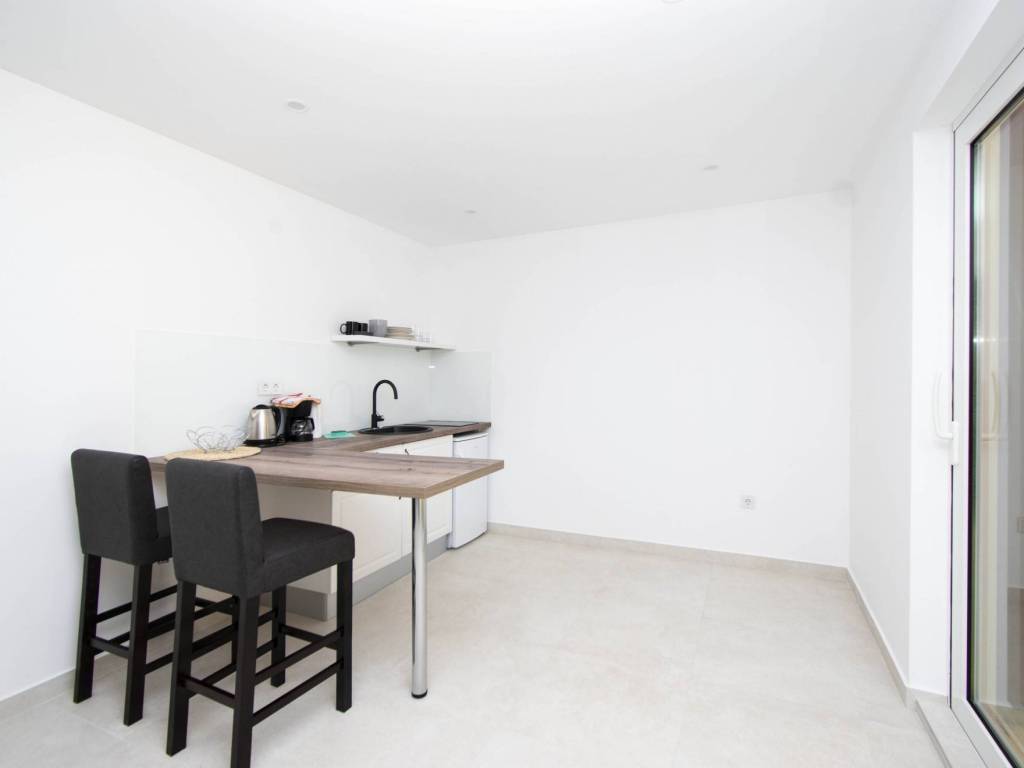 The ground floor has a modern open space kitchen with a living room and a dining room, and there is also one bedroom with a bathroom, additional bedrooms and a storage room.
