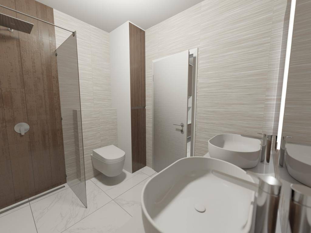 The living area of apartment S10 on the second floor is 98.18 m2, and consists of: hallway, two bedrooms, bathroom, kitchen with dining room and living room, toilet, loggia, parking space and outdoor storage. The special feature of this apartment is the roof terrace of 81.22 m2 with a panoramic view of the sea.
