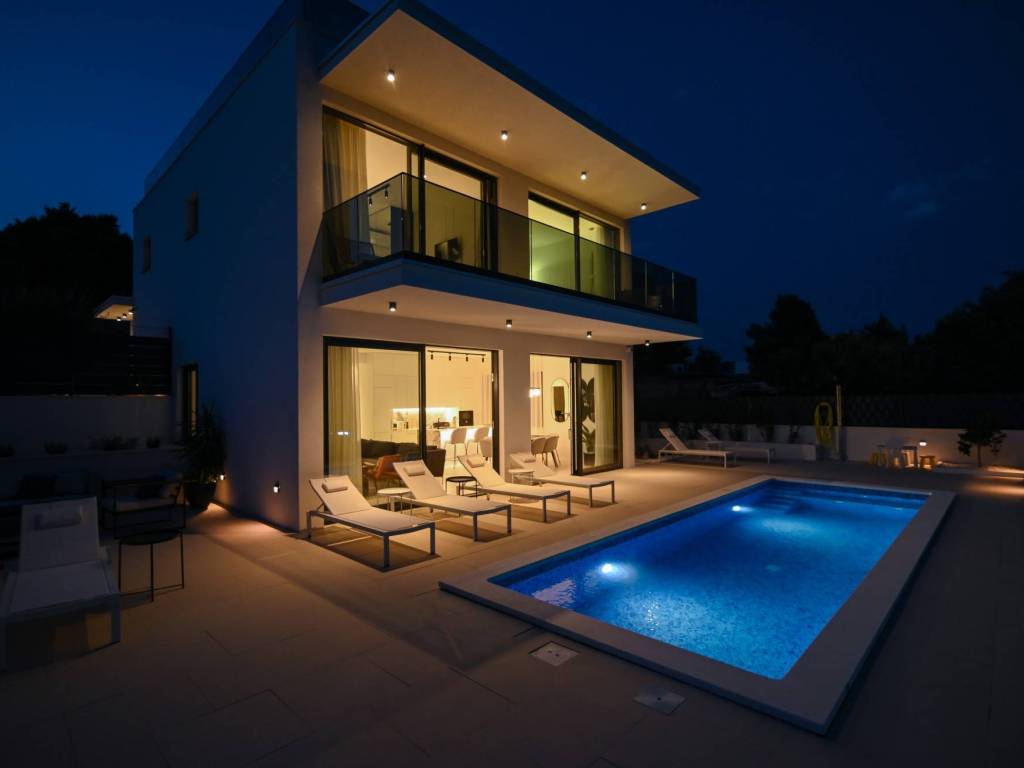 A beautiful luxury villa for sale in an extremely attractive location, in Okrug Gornji, on the south side of the island of Čiovo, in a peaceful and idyllic environment, only 70 m from the sea.