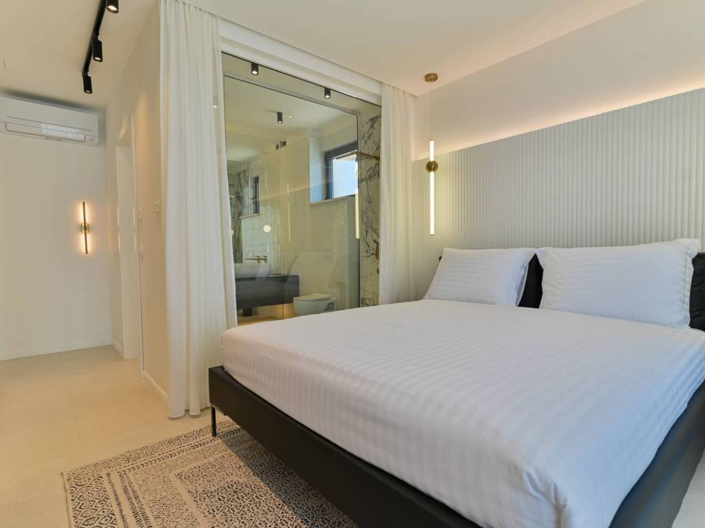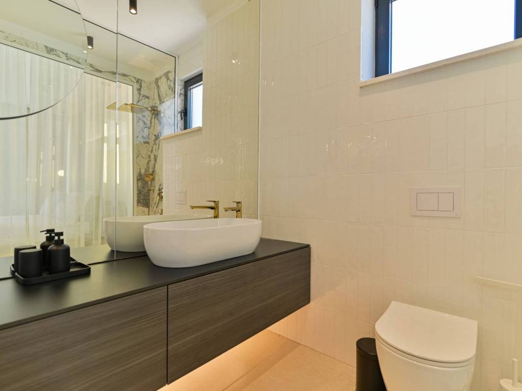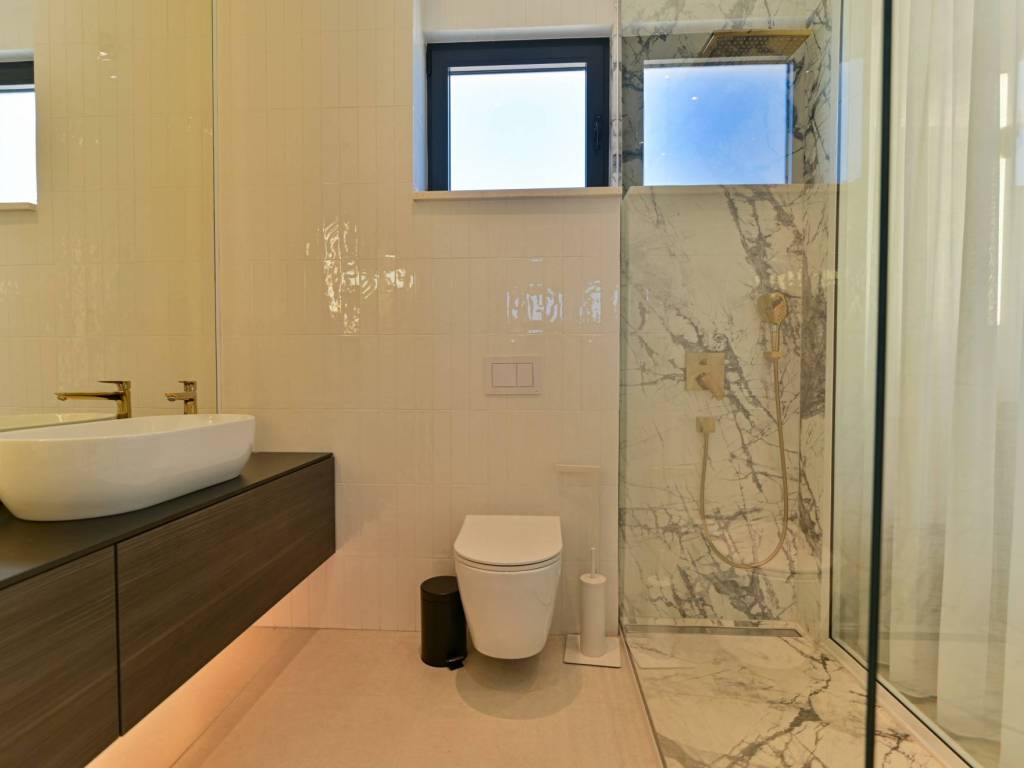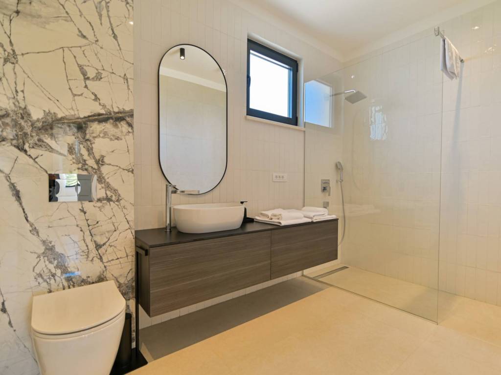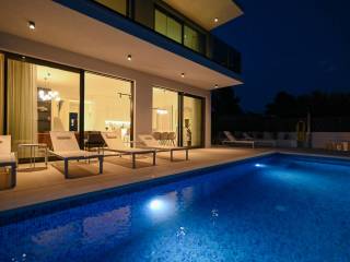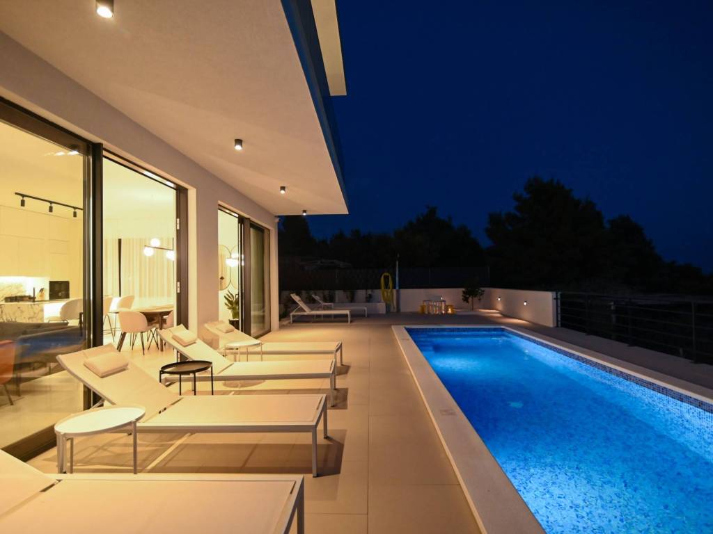 The exterior of the villa is completed with a large, modern swimming pool of 32 m² with a sunbathing area and a terrace that allows maximum relaxation in an idyllic Mediterranean environment.