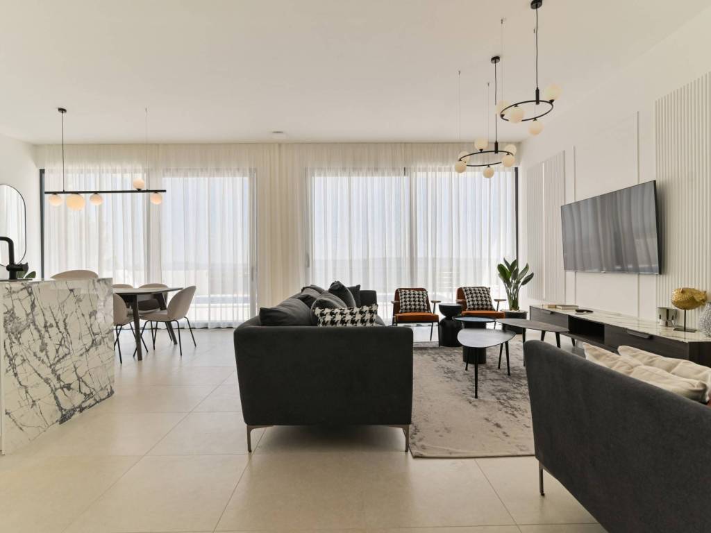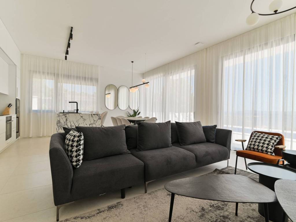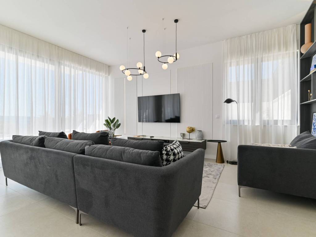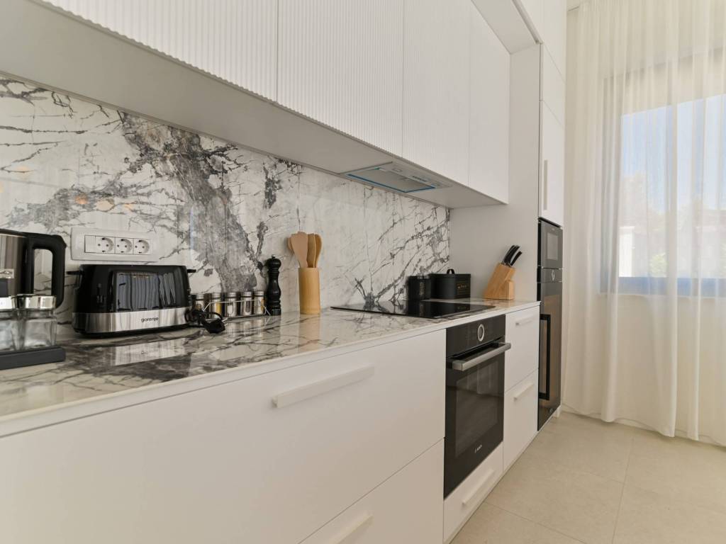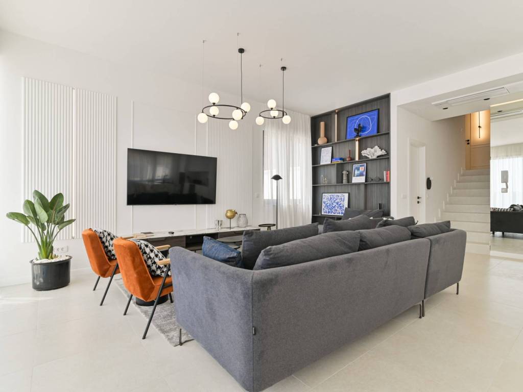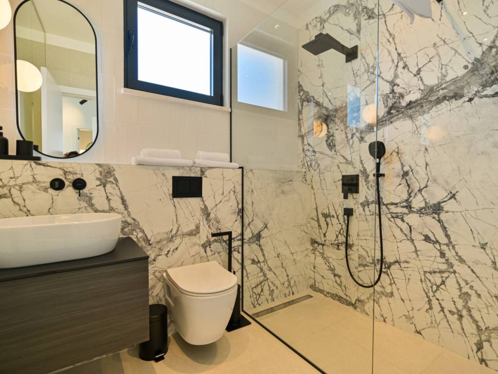 The exterior of the villa is completed with a large, modern swimming pool of 32 m² with a sunbathing area and a terrace that allows maximum relaxation in an idyllic Mediterranean environment.