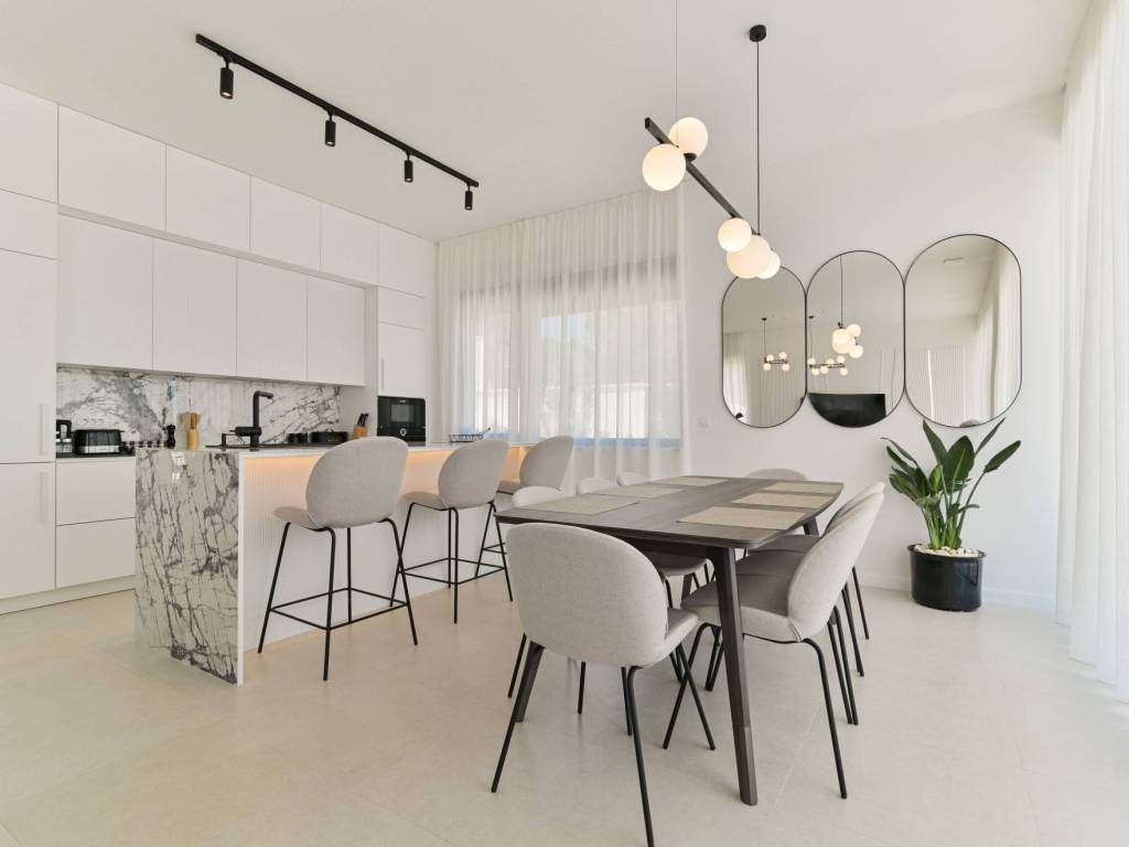 The villa has 4 bedrooms, living room with kitchen and dining room, four bathrooms and one toilet. It is sold fully equipped and furnished.