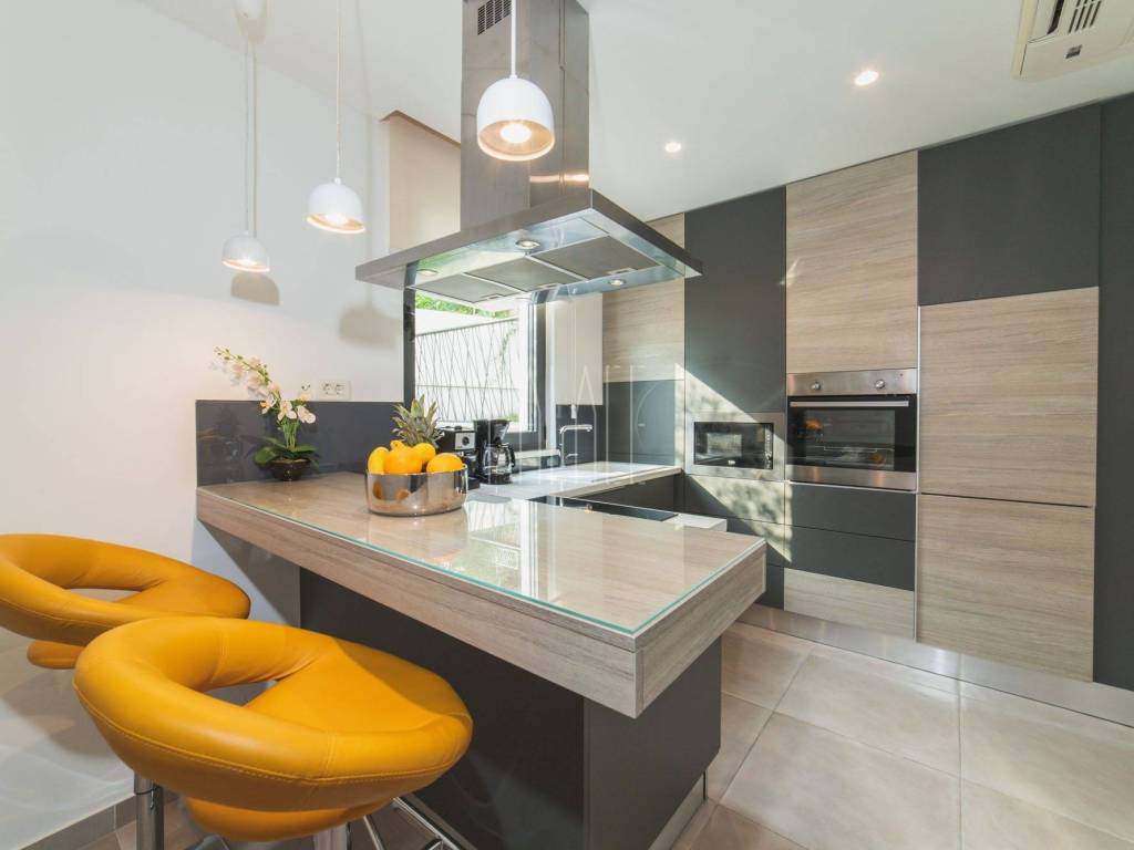 This villa is a modern architectural composition of clean lines and large glass walls that connects the interior of the villa with a beautifully landscaped garden and fits perfectly into the natural environment that surrounds it.