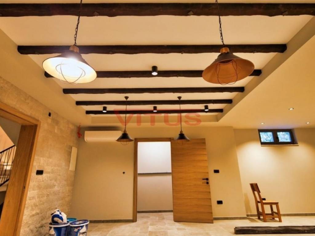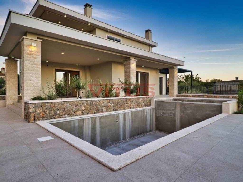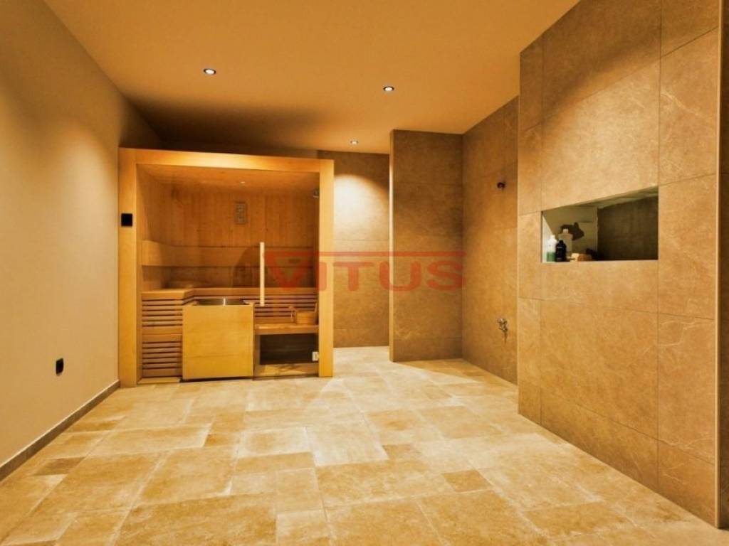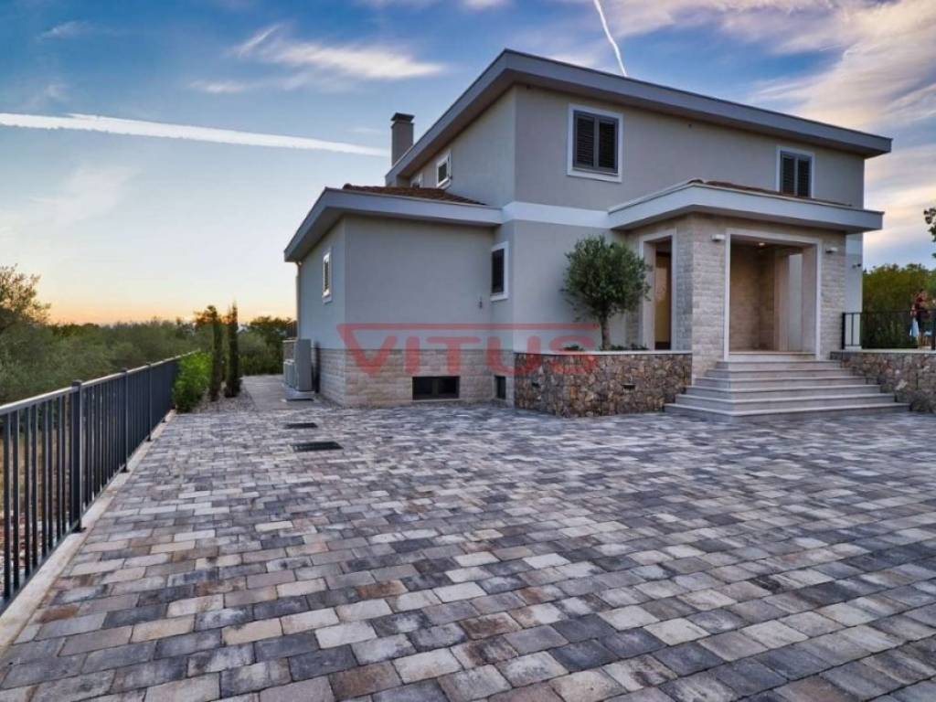 A modern mediterranean villa, with a total living space of 324 m2, is located in a quiet part of the Malinska. It consists of a basement, ground floor and first floor. In the basement there is a sauna, a social area, a gym and a toilet. The ground floor consists of a kitchen with a dining room, a pantry, a spacious living room, a toilet and a bedroom with its own bathroom. The living room has access to a covered terrace. On the first floor there are three bedrooms with their own bathrooms. Two bedrooms have access to a shared terrace with a beautiful sea view. There is a swimming pool with a sunbathing area, a summer kitchen, and parking for several vehicles on the beautifully landscaped garden. Quality construction and equipment, air conditioning, top quality ceramics, solid fuel fireplace, PVC joinery. It is sold unfurnished. In a quiet part of the Malinska area, 2000 m from the sea.