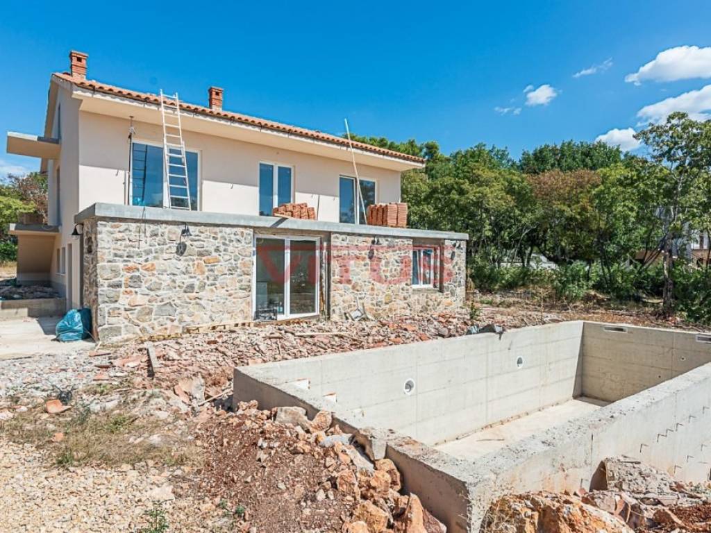 Villa with a swimming pool, with a total living space of 343.71 m2, is located in the wider surroundings of Malinska. It consists of a basement, ground floor, first floor and attic. There is a 30 m2 tavern in the basement. On the ground floor there are two living rooms with kitchens, three bedrooms, two bathrooms, a gym and a sauna. On the first floor there are two bedrooms, living room with kitchen, bathroom, toilet, terrace and balcony. In the attic there is a library and a balcony. On the spacious, landscaped garden there is a private tennis court, a swimming pool with a sunbathing area, and a space for comfortable parking of several vehicles. Quality construction and equipment, PVC carpentry. The property is currently under construction, the completion of the works is planned for 2023. In a quiet part of the island, 6000 m from the sea!
