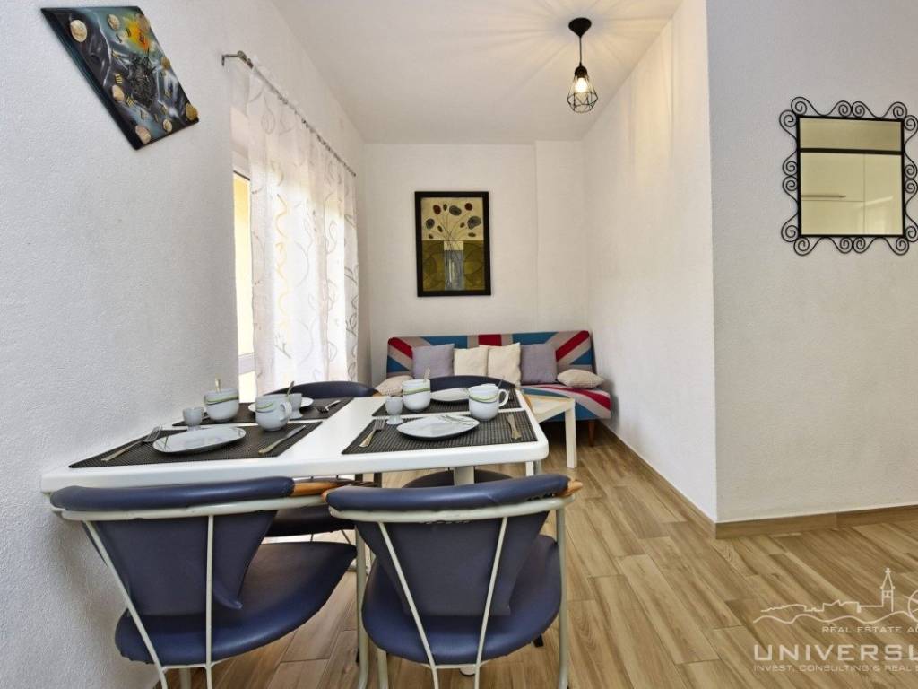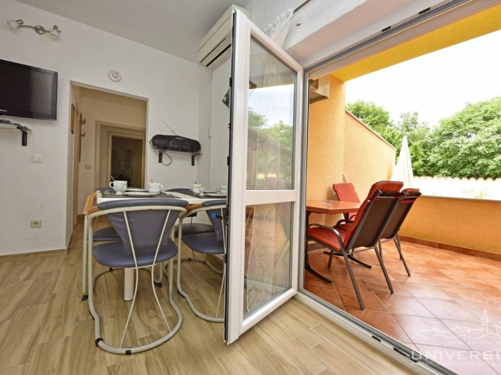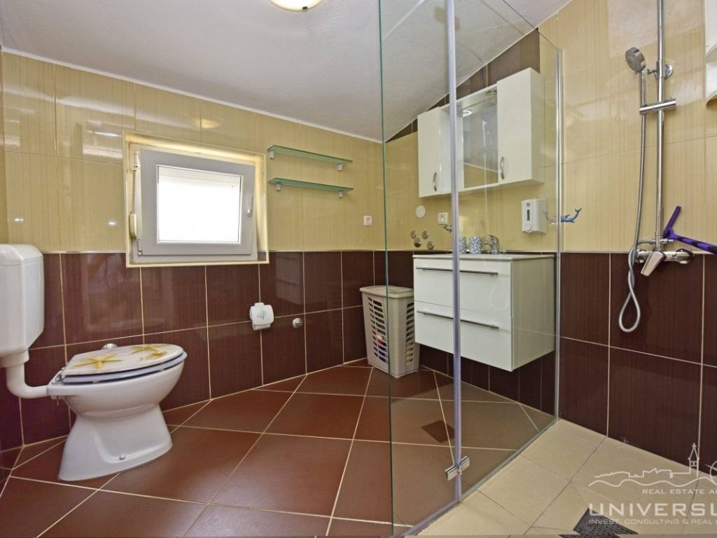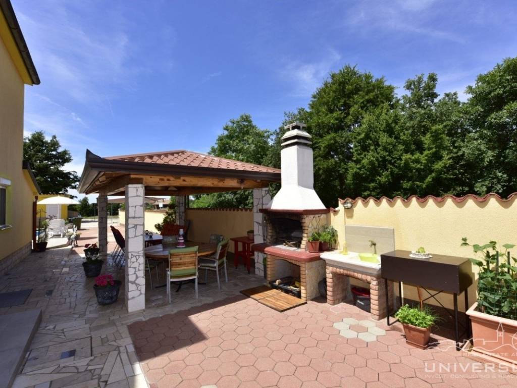 This apartment house with a total of five apartments is for sale in the vicinity of Poreč. The house has two floors: there are three apartments on the ground floor and two apartments on the first floor. Each apartment has two bedrooms, bathroom, kitchen with dining room and living room with access to the terrace. Heating/cooling is solved by air conditioning. In the yard of this beautiful house there is a swimming pool and a summer kitchen. Due to its location, the house can be used for residential and tourist purposes.