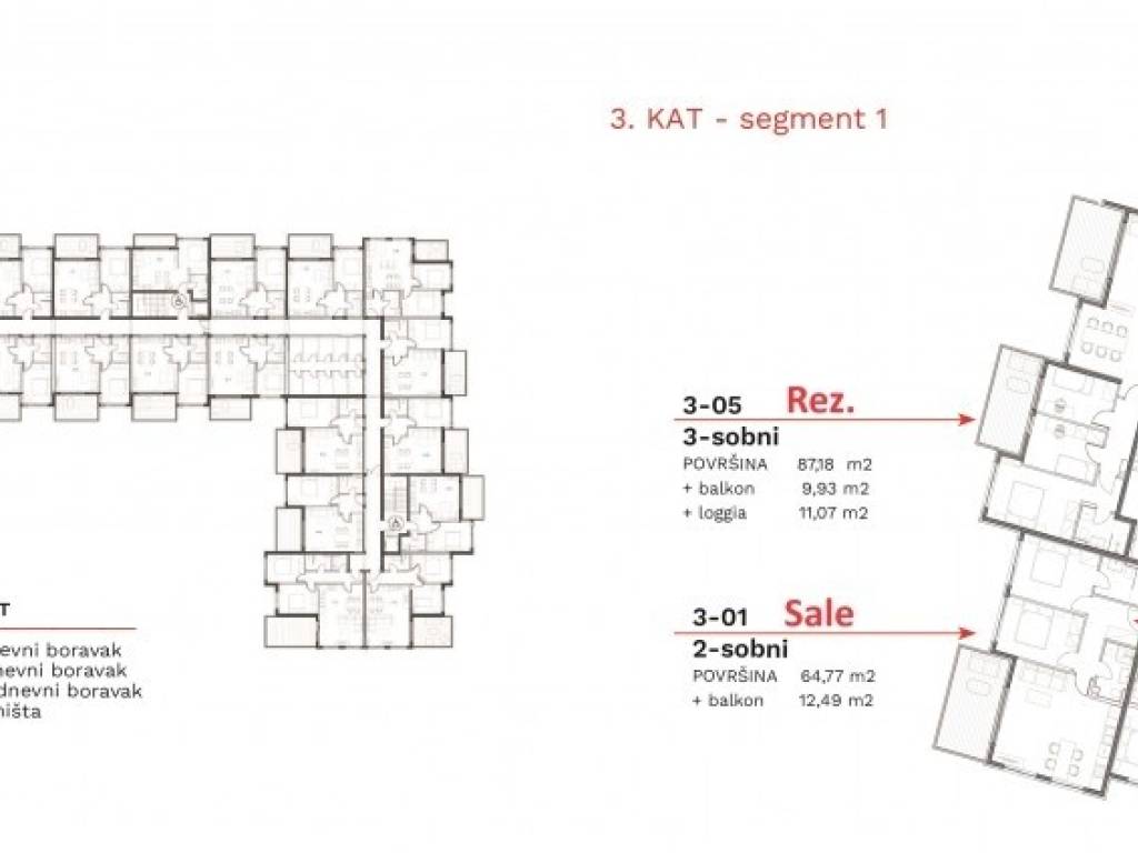 Description of the building: It consists of four entrances and a total of 122 apartments - of different layouts and square footage. The project offers a variety of studio, one-bedroom (+ living room), two-bedroom (+ living room) and three-bedroom (+ living room) apartments - vertically connected with elevators and stairs from the parking floor to the entrance to the apartments. Modern and comfortable apartments also have spacious balconies, loggias and/or terraces with a garden, which provide high quality housing in a unique location near all amenities.