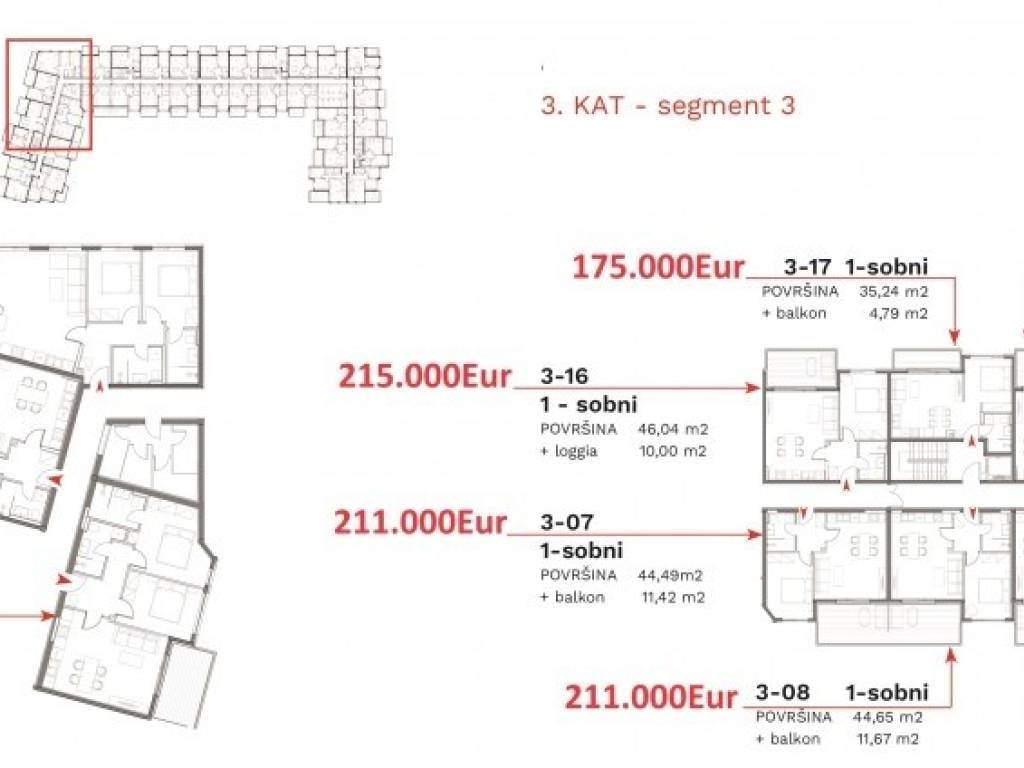 Below you can view pictures of the building along with floor plans that highlight the respective prices of individual apartments.