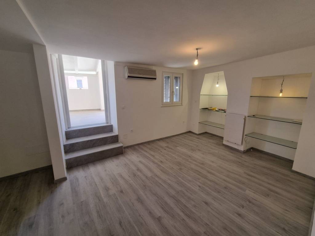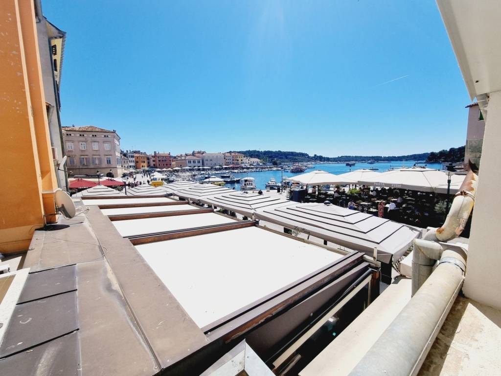 This property is located on the first floor of a historic building, with the entrance hidden in a narrow stone street. The space covers 55 m2 and consists of two bedrooms, a bathroom and a combined kitchen and living room. The living room opens onto a unique terrace - a rarity in Rovinj - of 20 m2 and offers a beautiful view of the old town and the marina.