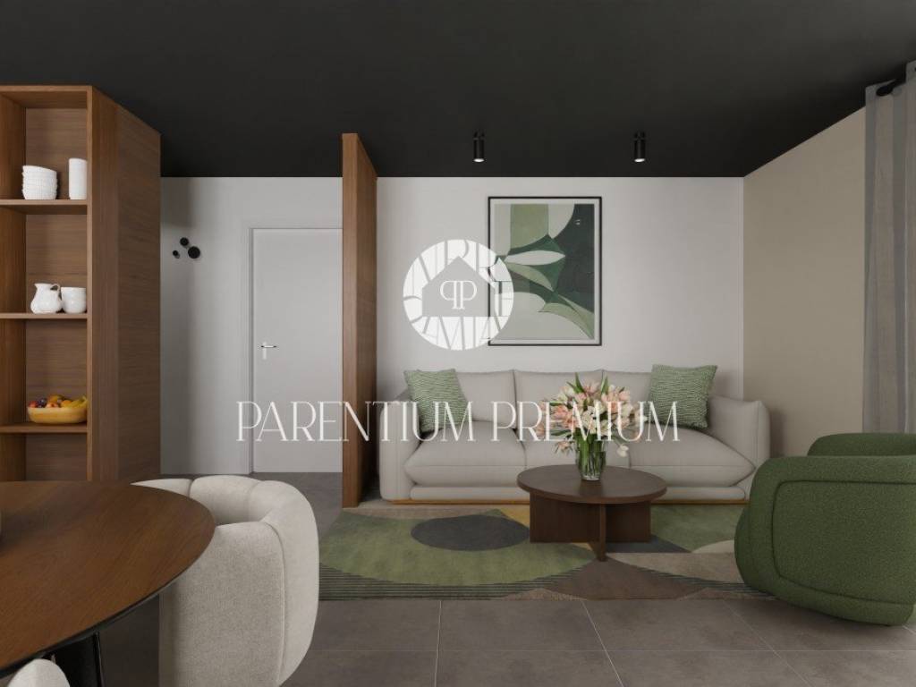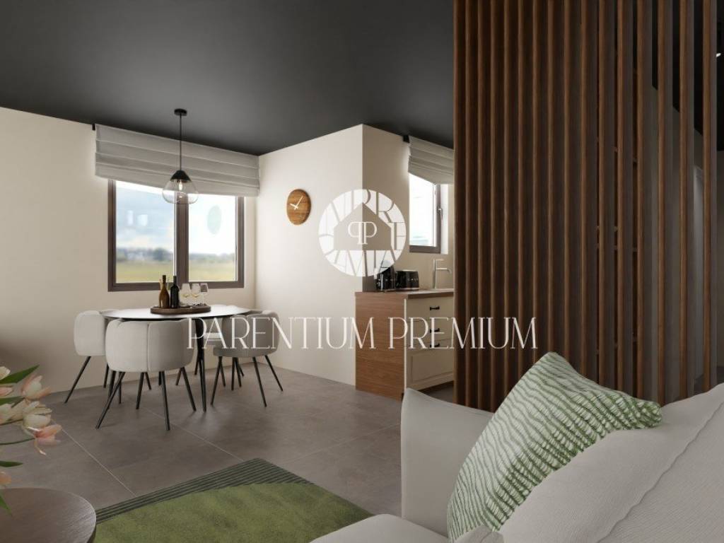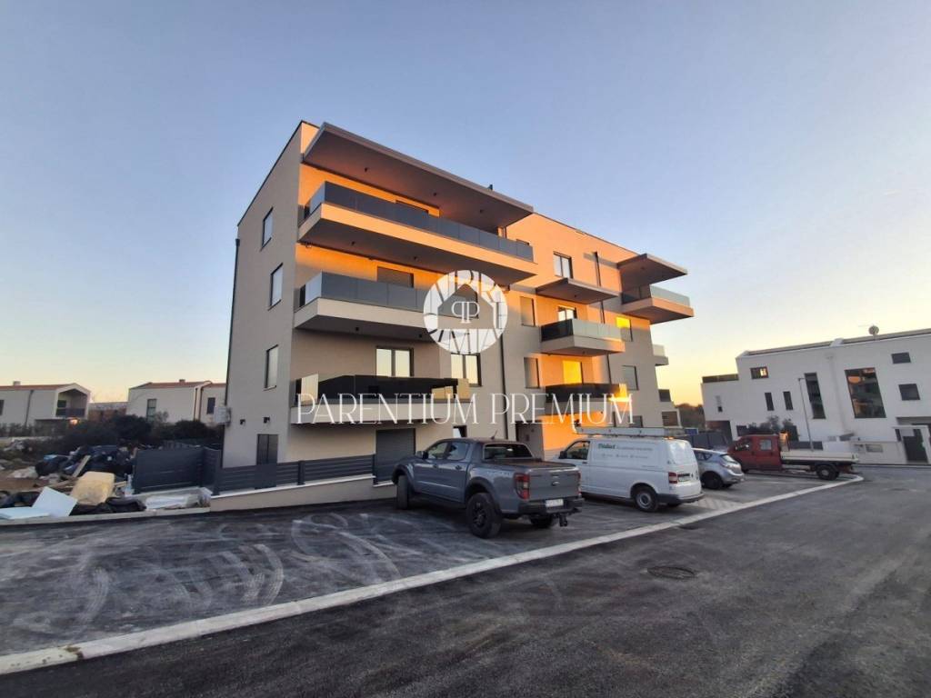 In the vicinity of the city of Poreč in a beautiful tourist town, this new modern building with an elevator is located just 700m from the well-maintained beaches.