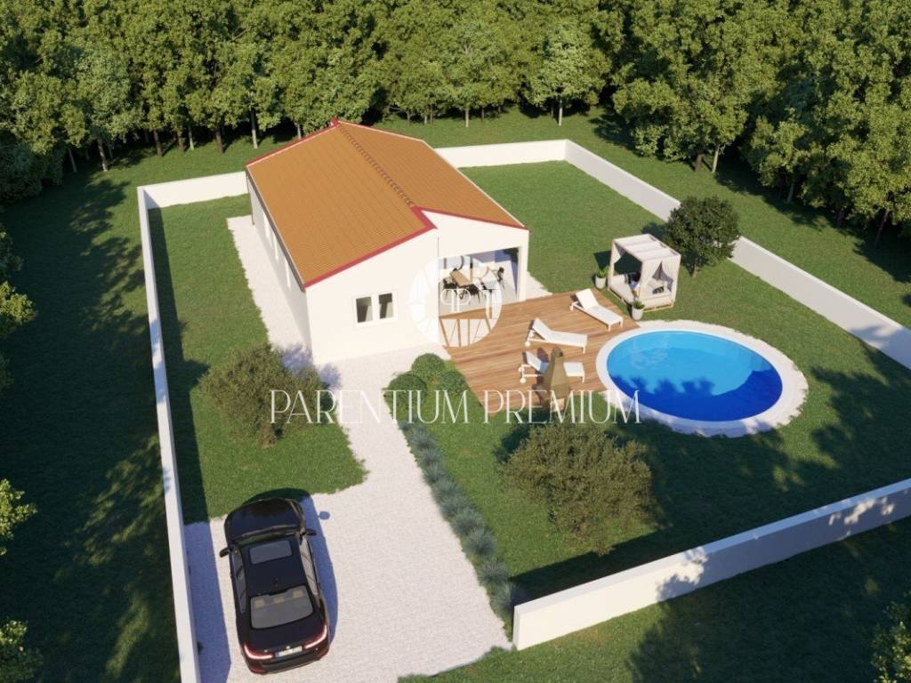 A prefabricated house for sale with a swimming pool in a quiet village far from the noise of the city. The house consists of a covered entrance terrace, kitchen with dining room and living room with access to the yard, three bedrooms and three bathrooms. There will be a 30 m2 swimming pool in the large yard. The house is located on a plot of 2128 m2. Heating and cooling will be regulated via air conditioning, while at this stage electric underfloor heating can be installed for an additional charge. The insulation is 16 cm of glass wool in the walls and 8 cm of styrofoam and the facade. The new owner can arrange the house according to his taste, considering that the house is still under construction, agreements are possible with the seller, who is also the contractor. The house is sold turnkey with furniture. This property is an ideal solution to housing issues or as an investment for tourist purposes.
