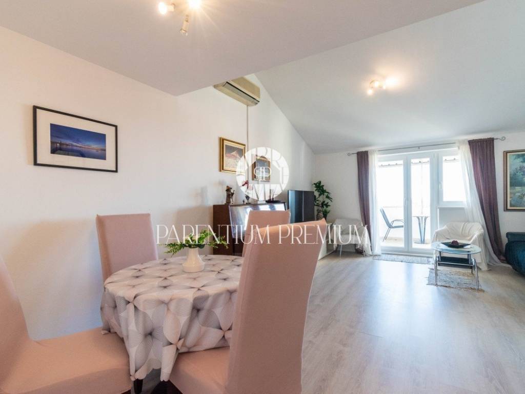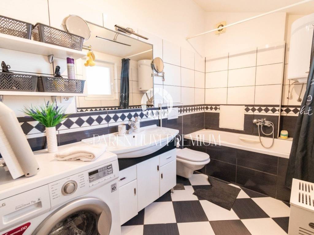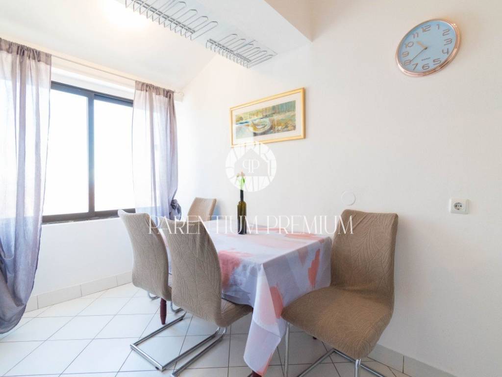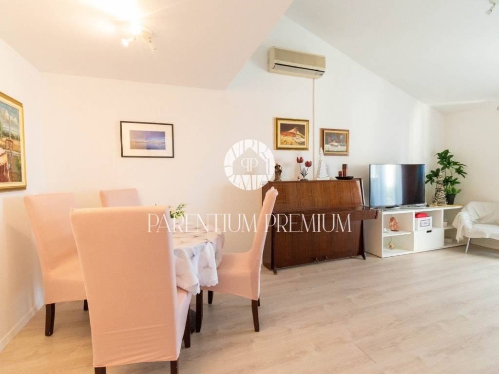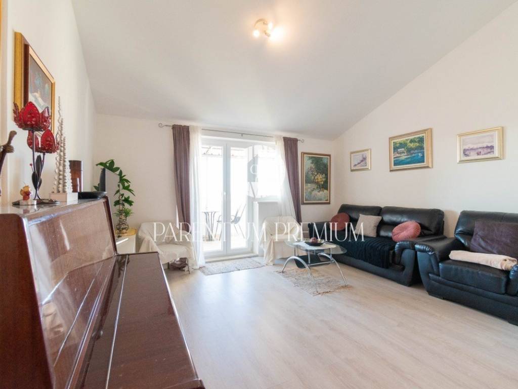 The apartment consists of a living room with a dining room and a separate kitchen, 3 bedrooms, a bathroom, a gallery on the second floor, which can be used as an additional bedroom or a storage room, and a beautiful terrace with a truly enchanting view of the old town of Poreč and the sea.