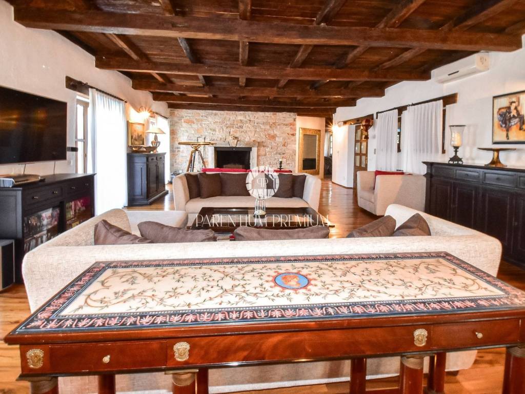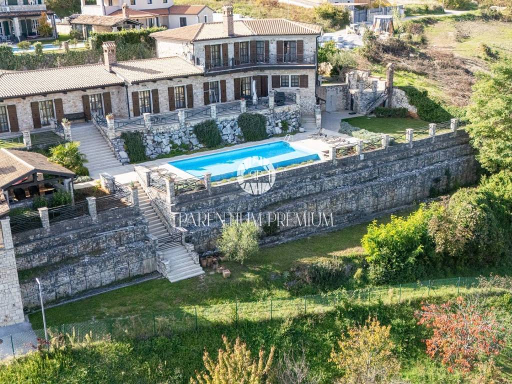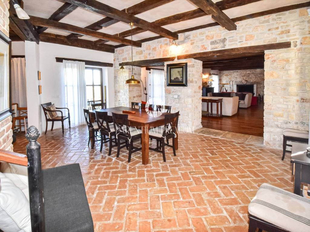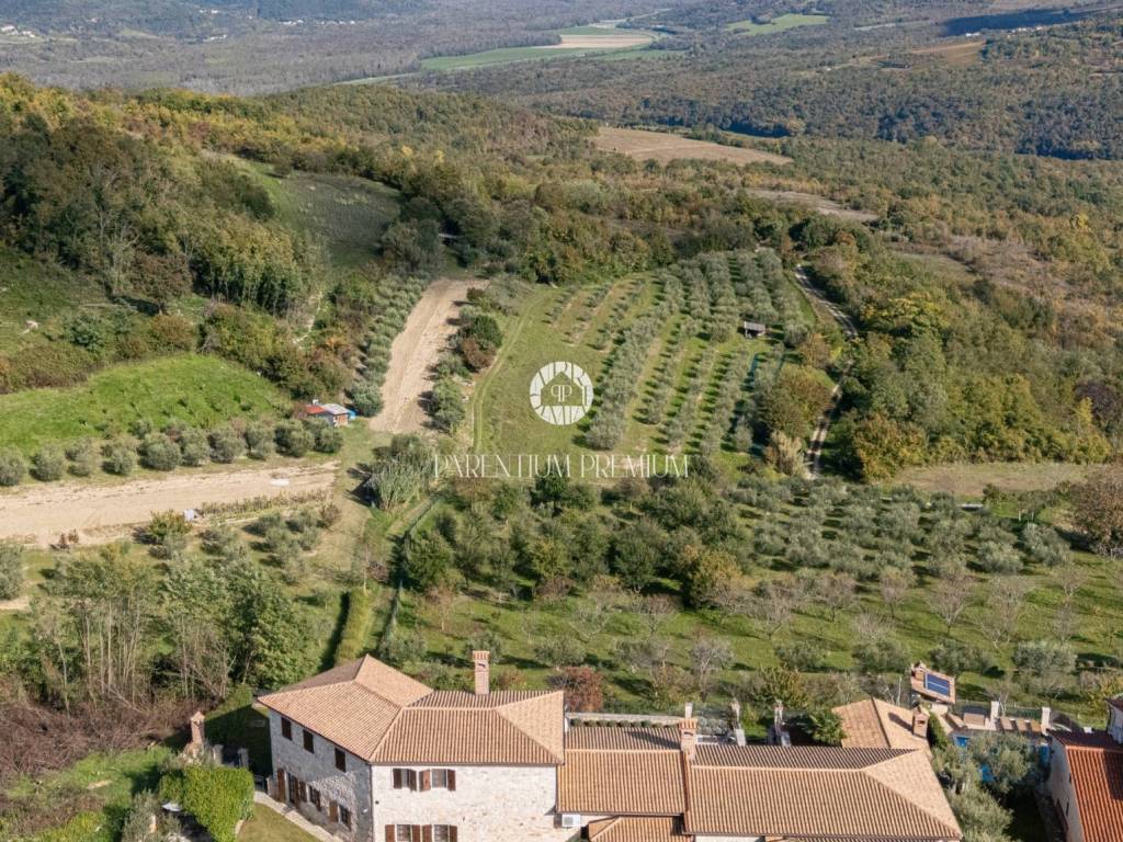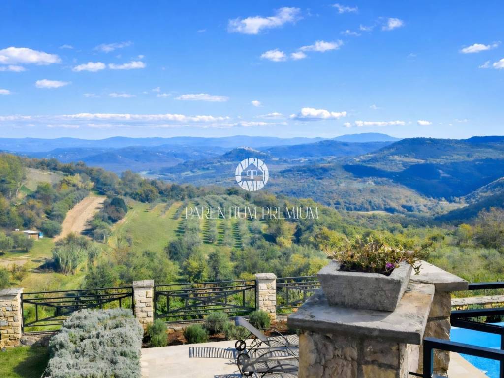 Situated in a peaceful location, this authentic Istrian villa offers approximately 500 m of living space on a beautifully landscaped plot of 1,735 m, with an open panoramic view of vineyards, olive groves and Motovun.