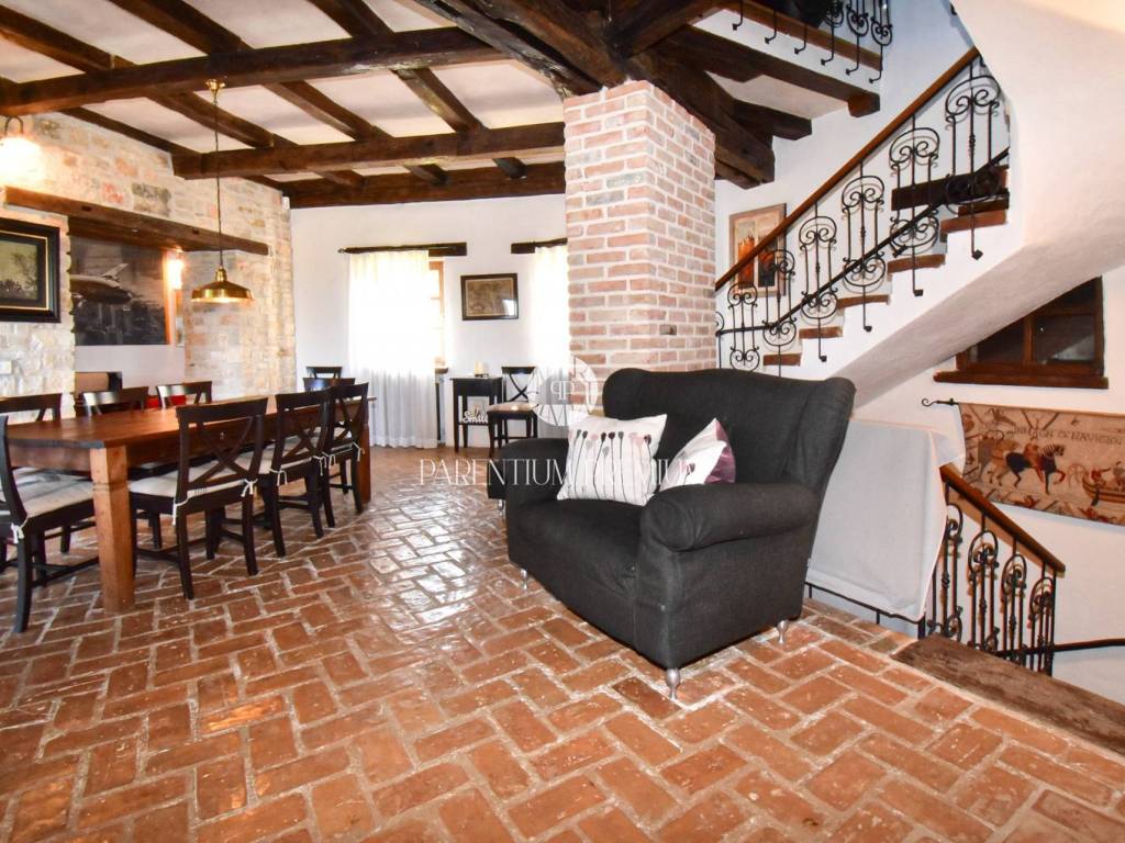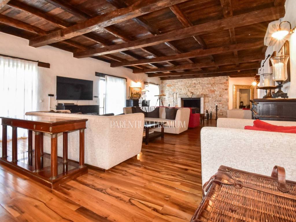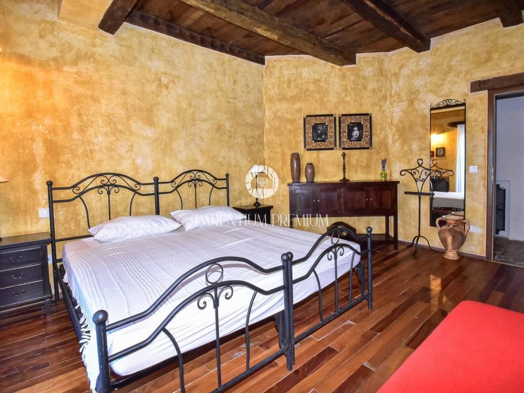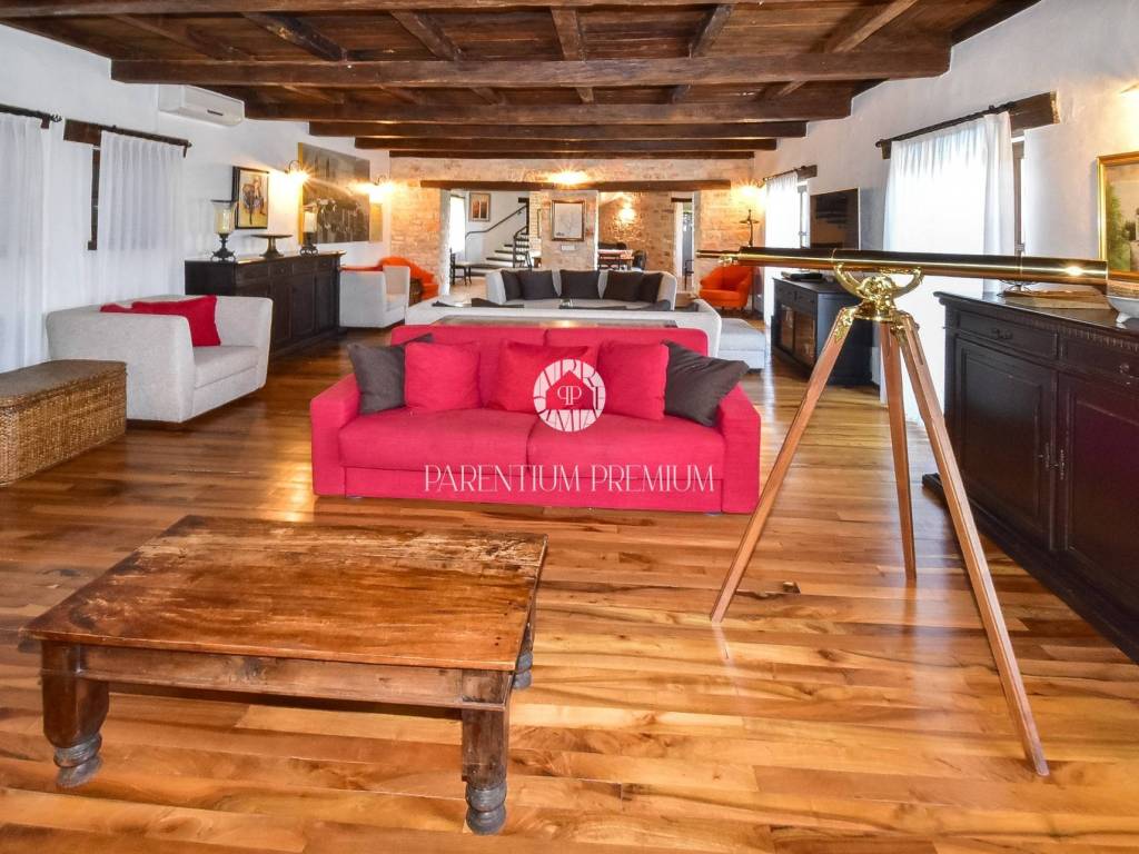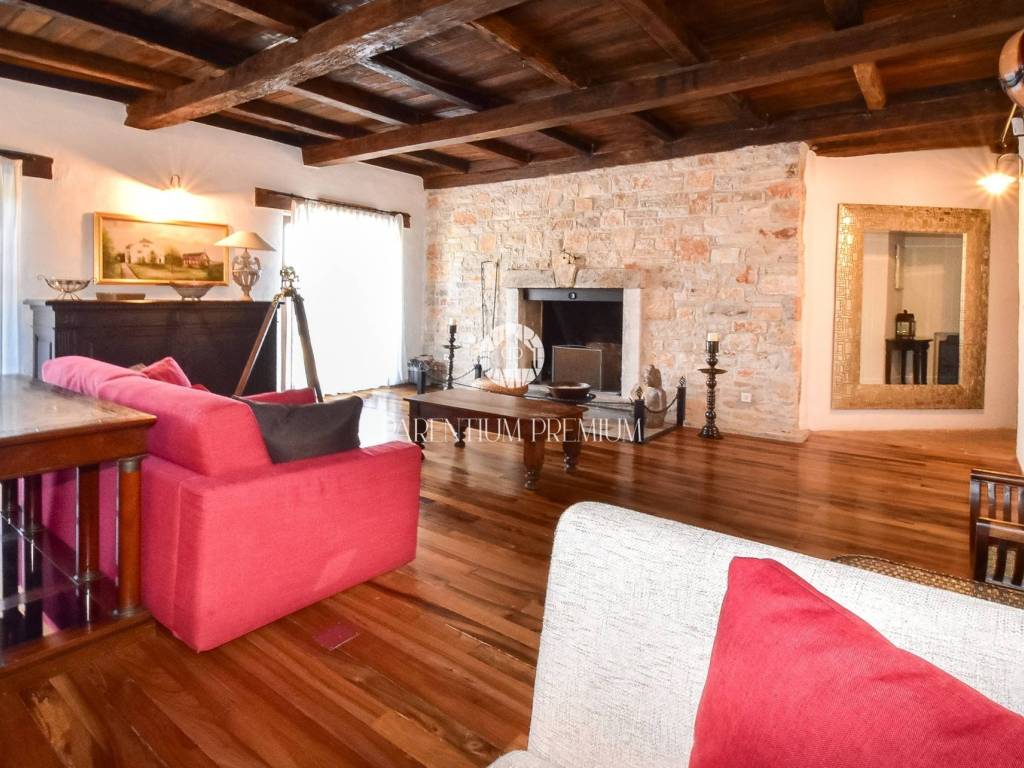 Situated in a peaceful location, this authentic Istrian villa offers approximately 500 m of living space on a beautifully landscaped plot of 1,735 m, with an open panoramic view of vineyards, olive groves and Motovun.