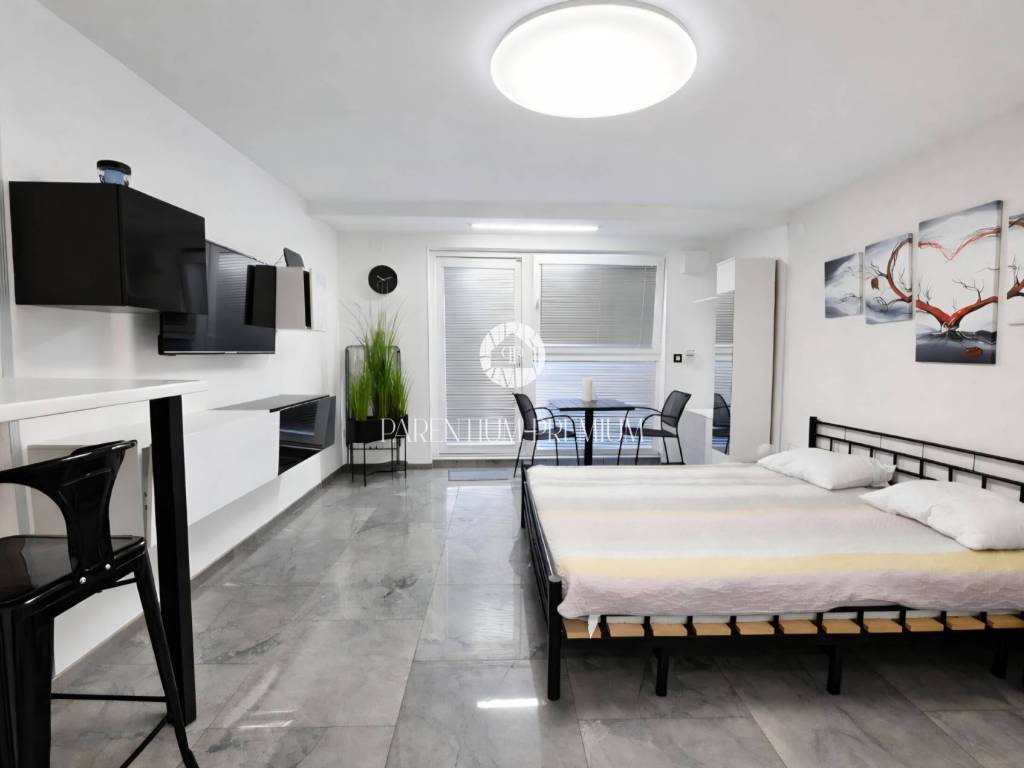 Prostor ukupne površine 24 m uređen je kao funkcionalna i moderno opremljena garsonijera, te je u potpunosti i kvalitetno renoviran. Prodaje se potpuno namješten, spreman za neposredno korištenje bez dodatnih ulaganja.