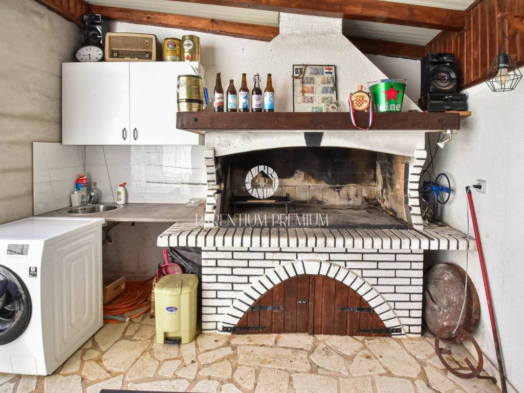 The 80 m garden includes a parking space, while a special atmosphere is created by the open konoba with a fireplace (25 m), designed as a space for gatherings with family and friends, barbecues, and enjoying the Istrian lifestyle. A 4 m storage room is located next to the konoba.