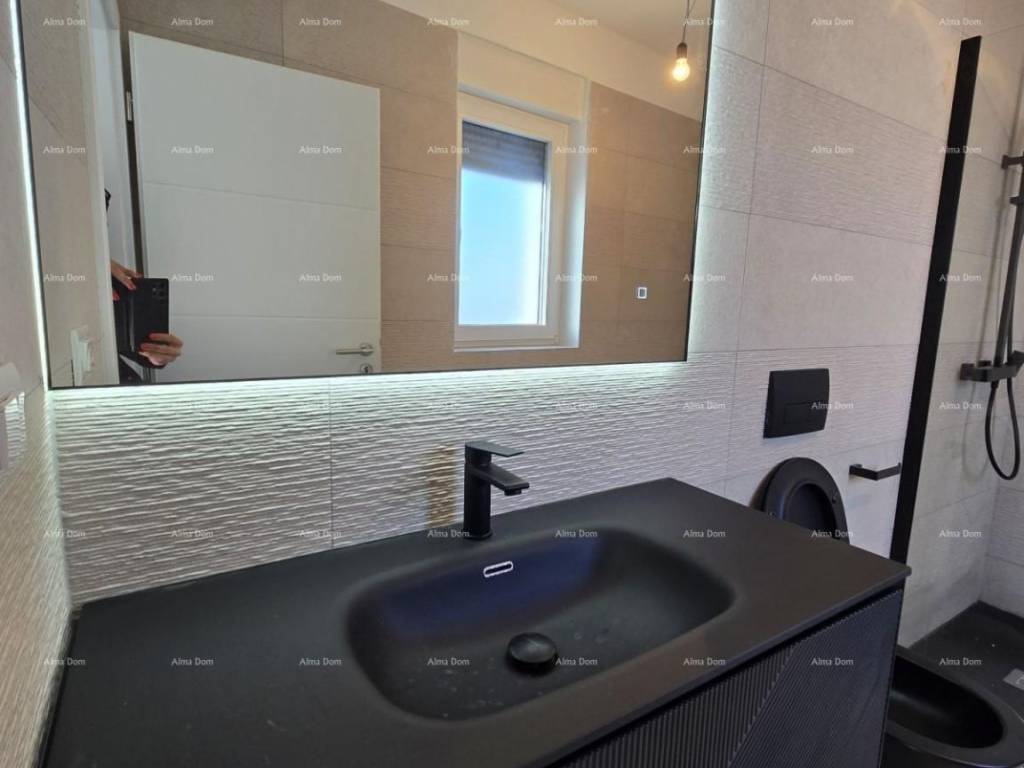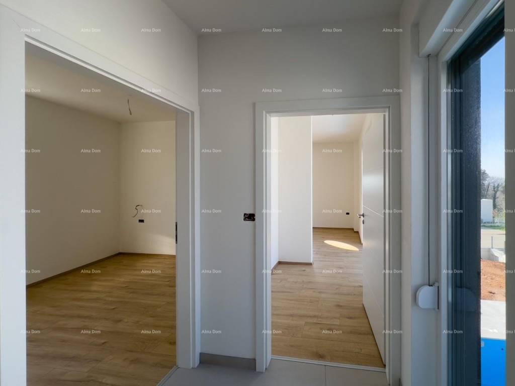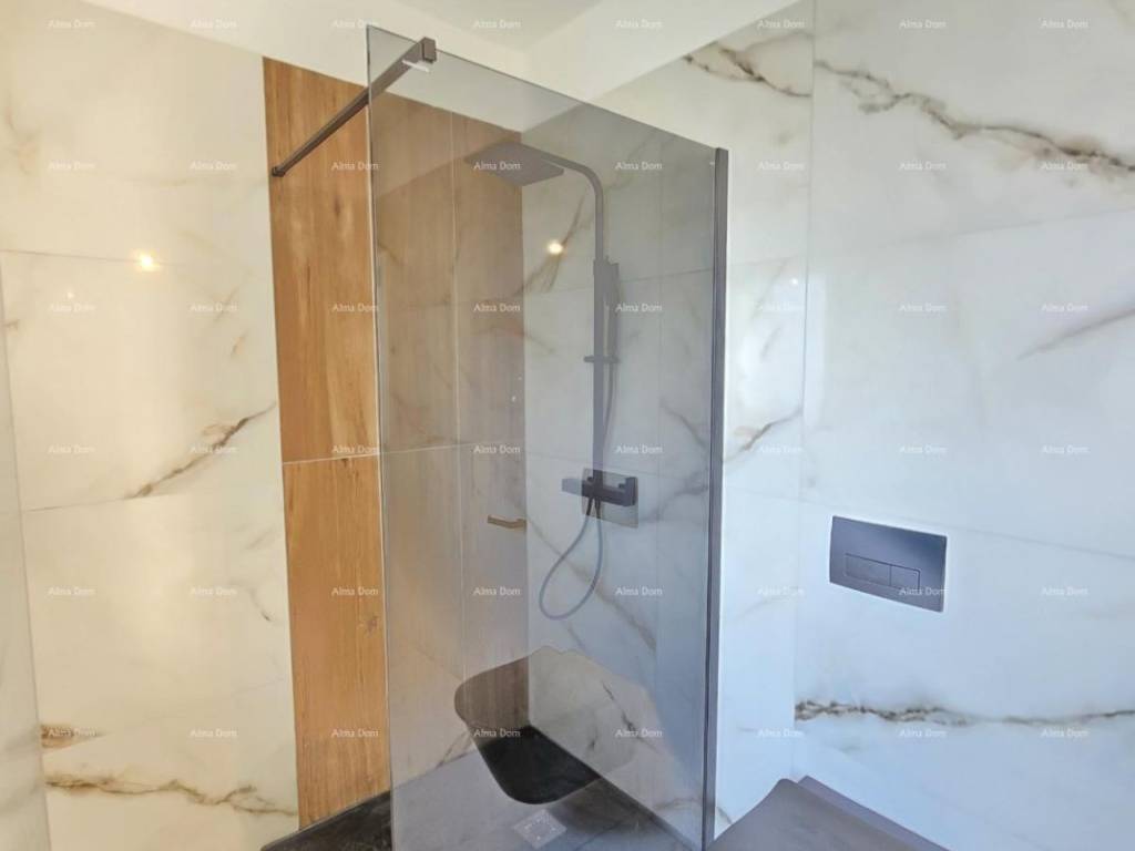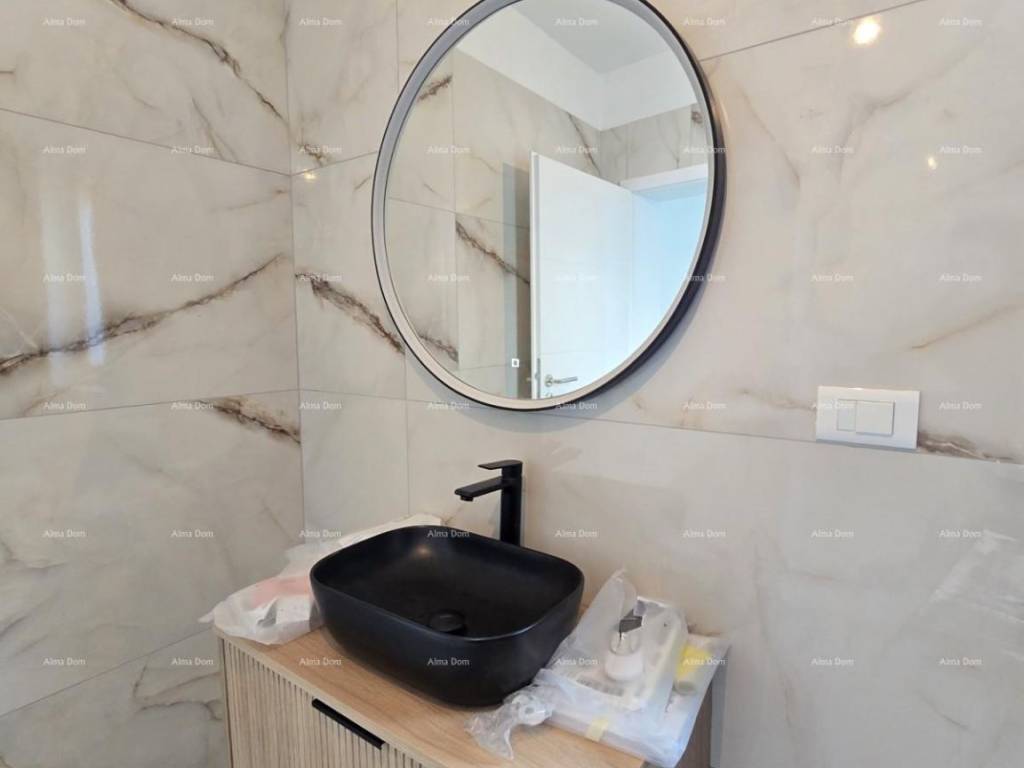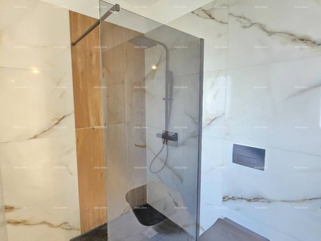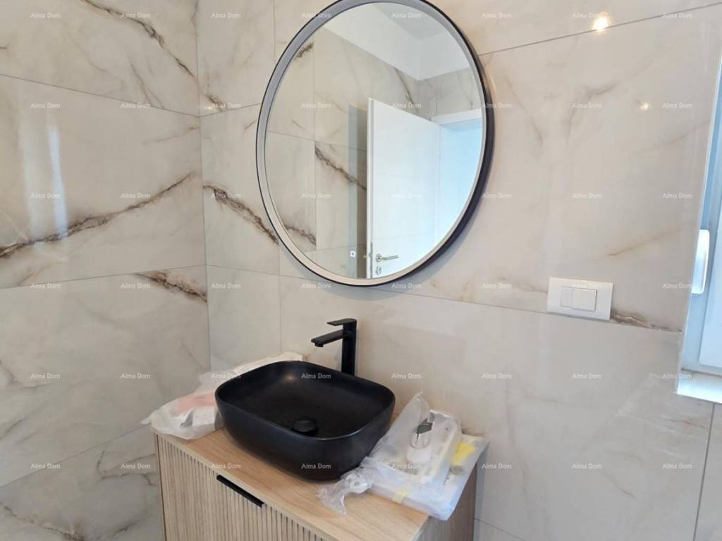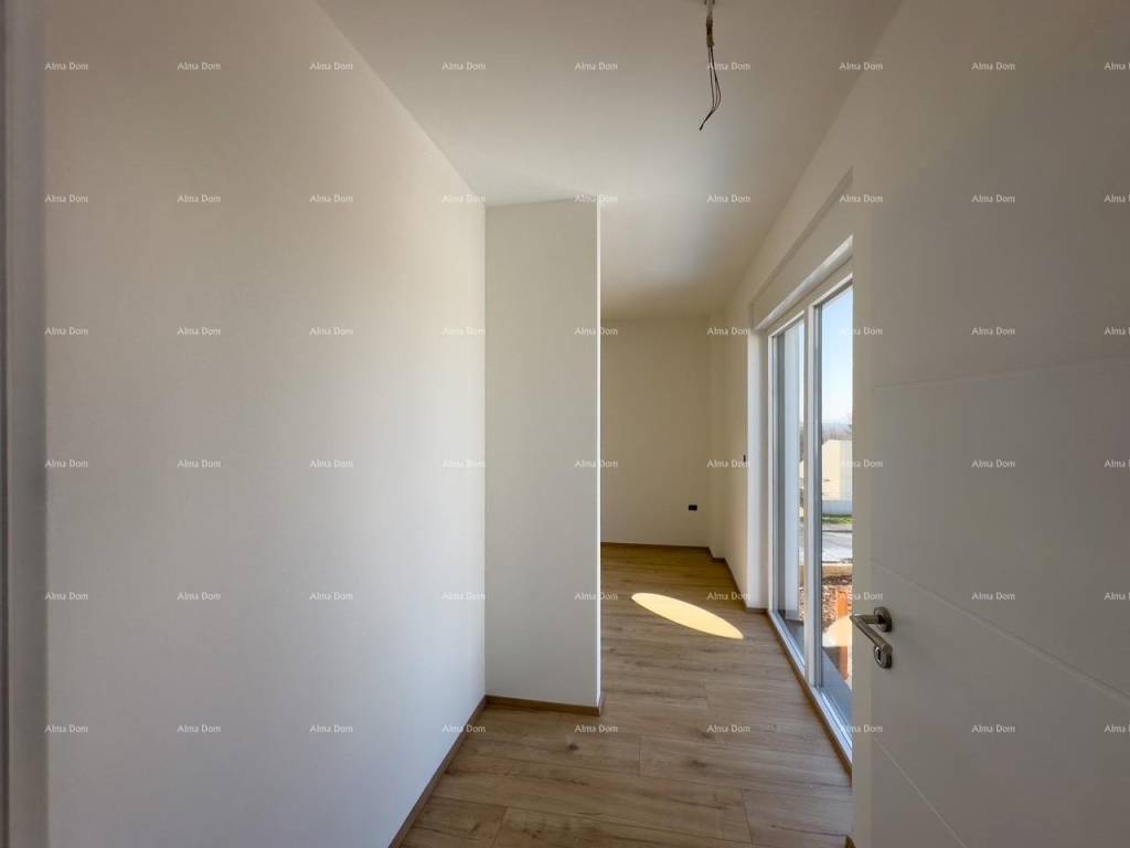 For sale is a new house with a pool measuring 155 m2. The house features a living room, kitchen, dining area, bedroom, and bathroom on the ground floor. The upper floor includes 2 bedrooms, a bathroom, and a storage room. One of the bedrooms opens onto a spacious terrace. The ground floor leads directly to the pool. The yard is approximately 550 m2.