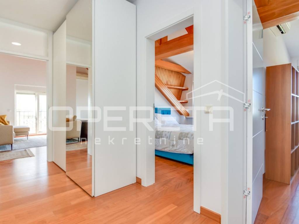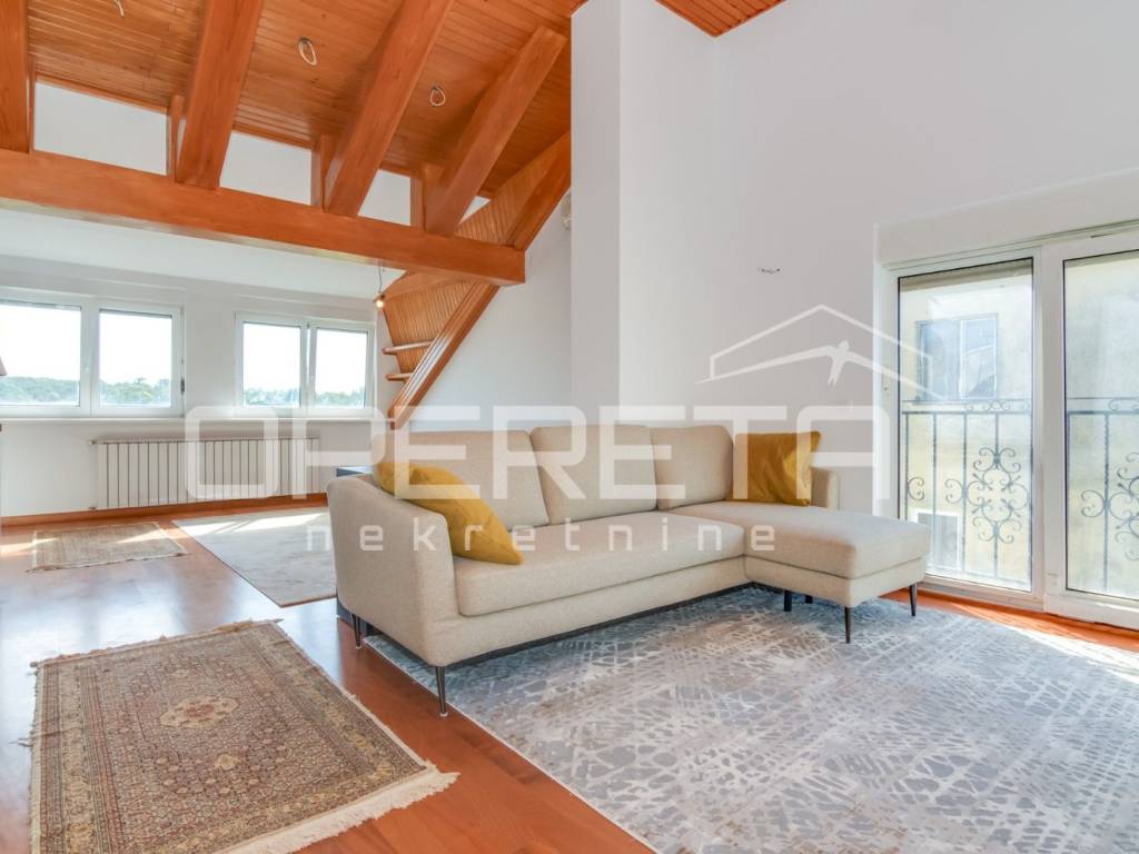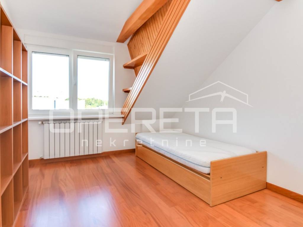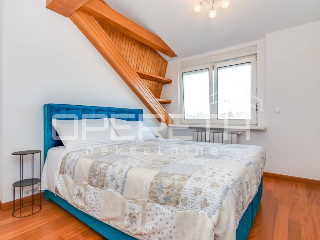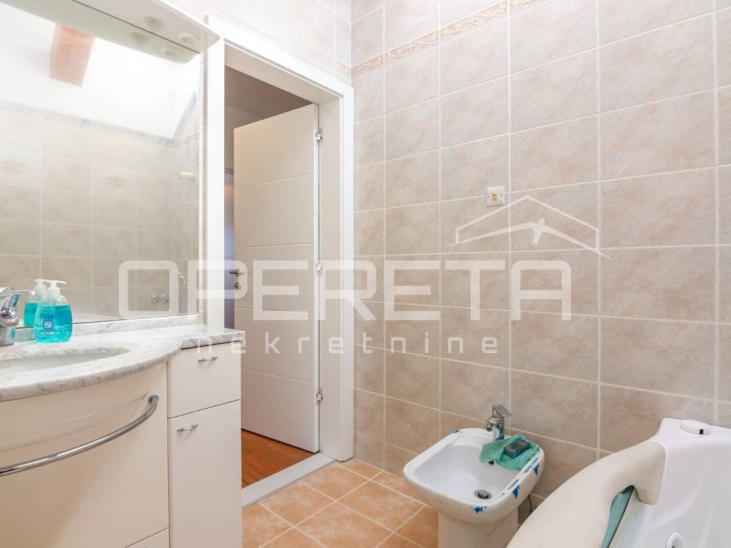 FOR RENT, APARTMENT, Bukovac, Bukovačka cesta, 4-bedroom, newly renovated, three-sided orientation, 2nd floor, in a recognizable and sought-after location, close to all amenities (BUS, Maksimir Park, hospital, restaurants, etc.). It consists of a spacious living room with dining area and kitchen (Veneto) equipped with all appliances, three bedrooms, two bathrooms (sauna, jacuzzi, toilet), technical rooms (study, children's, guest), spacious terrace and hallway. The apartment is air-conditioned with four air conditioners, parking is in the yard. AVAILABLE IMMEDIATELY!