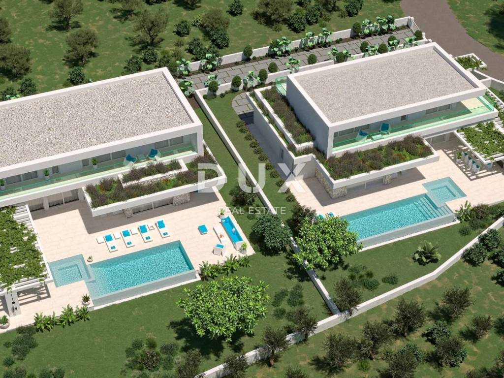 The perfect combination of luxurious construction, modern design, spacious terraces and swimming pools, located in front of a green area, makes this house ideal for a quiet family life or a safe investment in Istria.