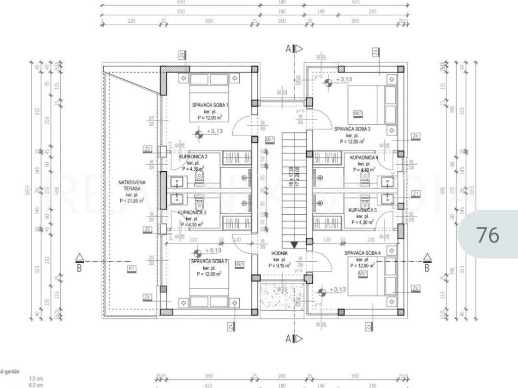 Na gornjem katu smještene su četiri spavaće sobe, svaka s vlastitom kupaonicom, što osigurava privatnost i udobnost, te velika terasa idealna za opuštanje i uživanje u mirnom okruženju.