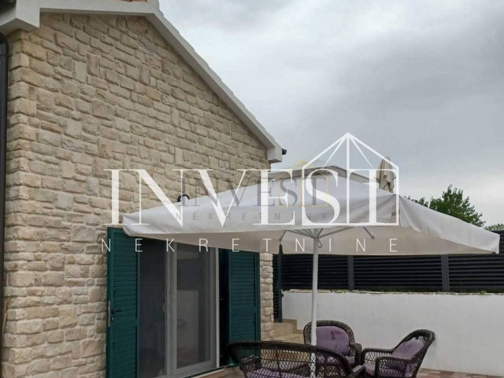 Okućnica: parking, uređena nadstrešnica I terasa, vanjski kamin, vrt sa mediteranskim