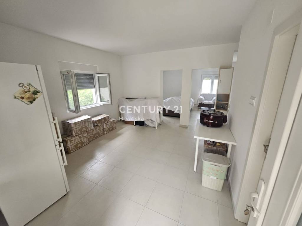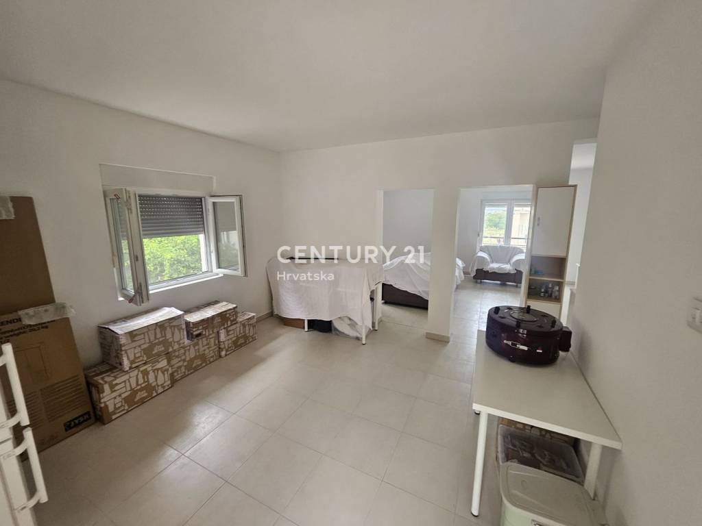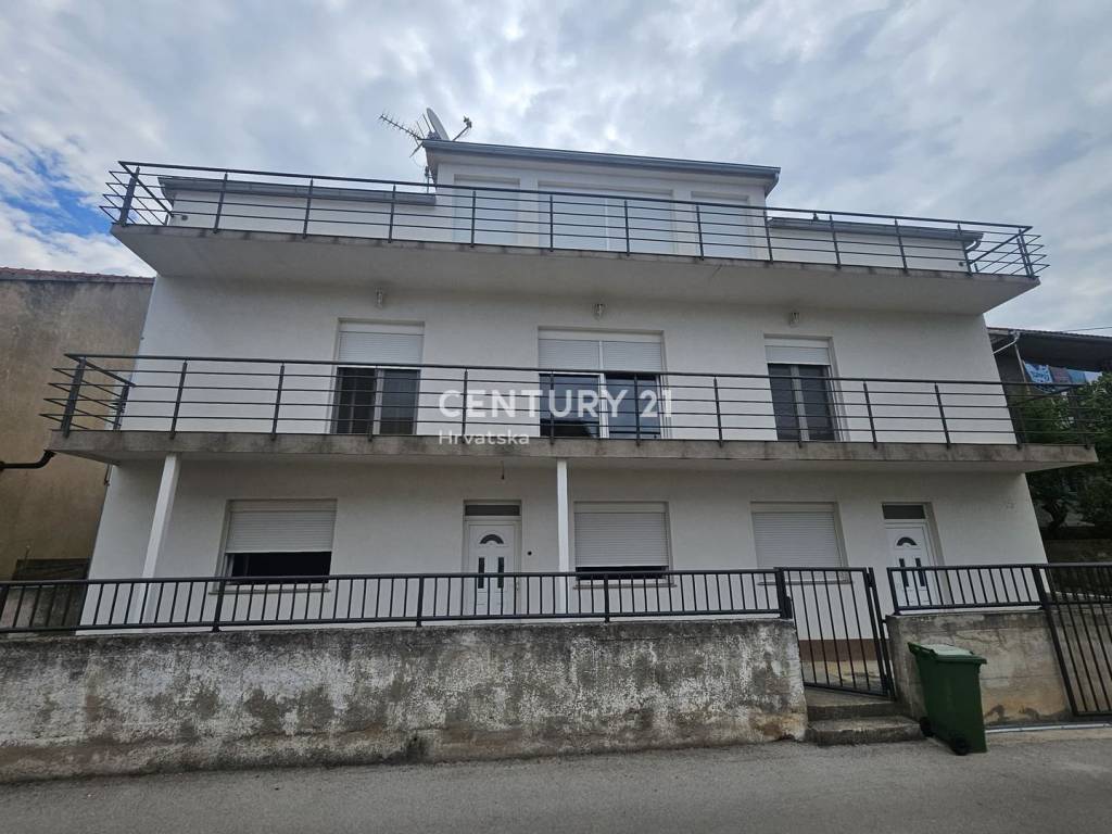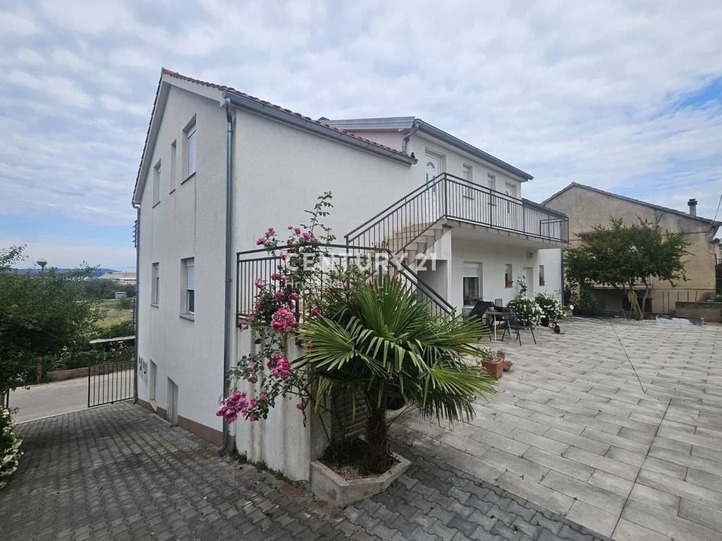 We are mediating the sale of a condominium apartment located on the ground floor of a residential house in Gornje Ražine, Šibenik. The building consists of a basement, ground floor, and first floor and is built on a land plot with a total area of 392 m2. The floor area of the house is 172 m2, and it consists of six apartments in total (two on each floor).