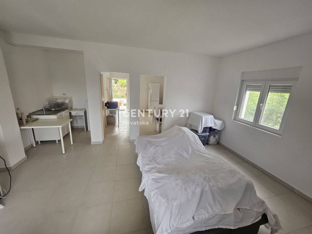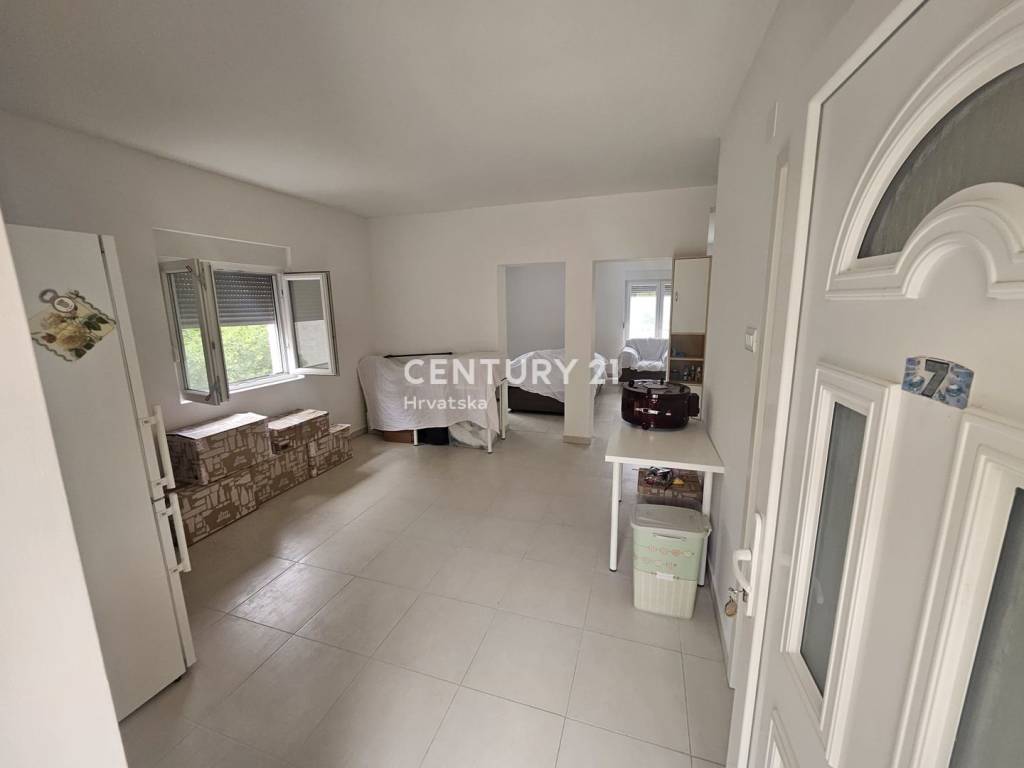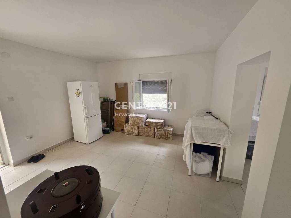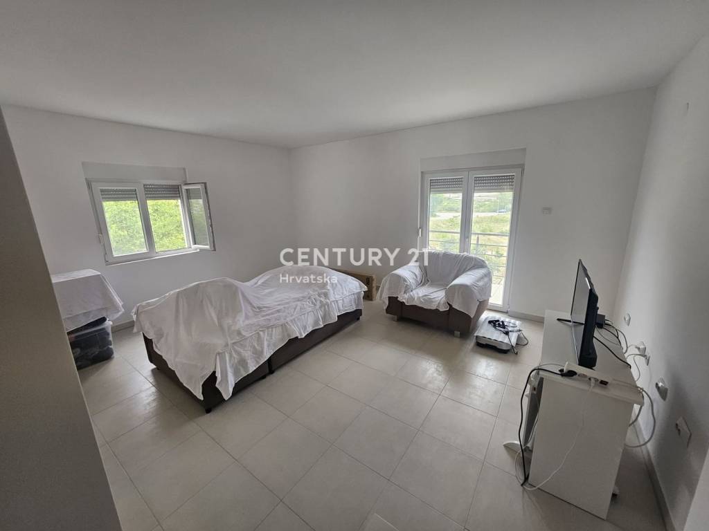 We are mediating the sale of a condominium apartment located on the ground floor of a residential house in Gornje Ražine, Šibenik. The building consists of a basement, ground floor, and first floor and is built on a land plot with a total area of 392 m2. The floor area of the house is 172 m2, and it consists of six apartments in total (two on each floor).