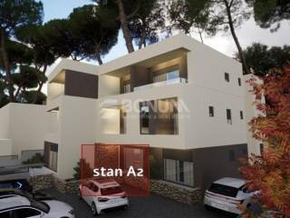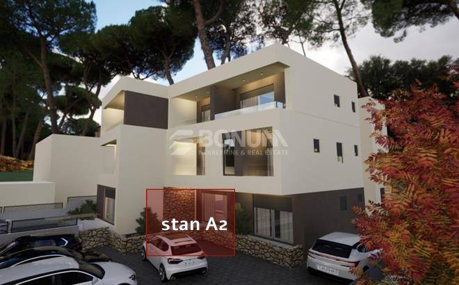 At an attractive location in Brodarica, just 130 meters from the sea, this spacious three-bedroom apartment is located on the ground floor of a modern building. The apartment consists of a hallway, two bedrooms, a bathroom, and a spacious living room with kitchen and dining area, with access to a terrace and a private garden. A parking space belongs to the apartment. The net area is 139.09 m², while the usable area is 78.48 m².