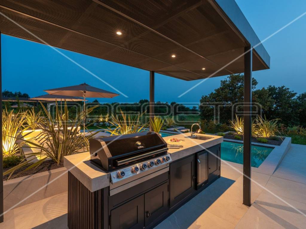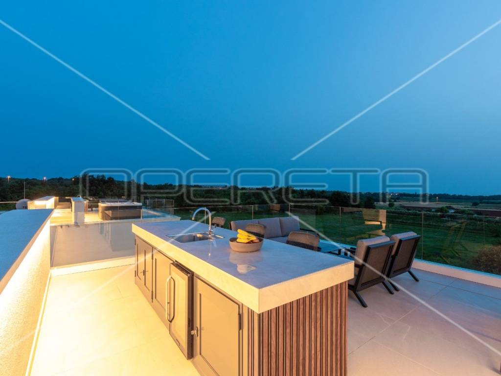 The Villa project in Kukci near Poreč represents the pinnacle of luxurious residential accommodation. Located on the last street of the settlement, on the edge of the construction zone, the complex offers an exceptional sea view. The complex consists of four separate villas, each on its plot. Each villa is fully furnished and equipped, offering a spectacular view of the open sea, approximately two kilometres away in a straight line.
