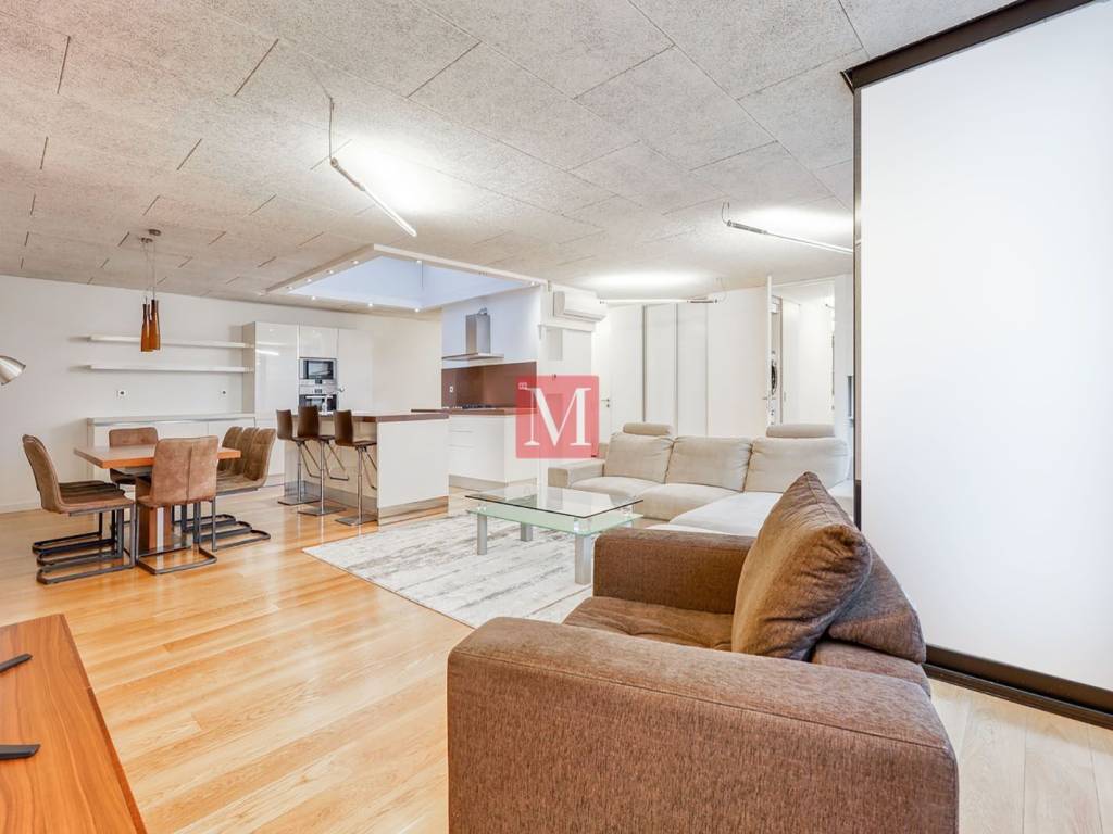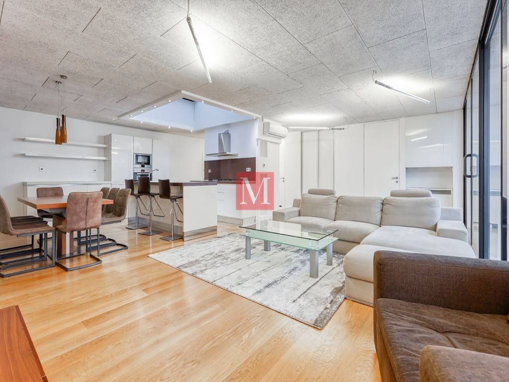 Beautiful, superbly equipped and furnished 4 bedroom penthouse of 160m2 on the top floor of a newer building, modernly and luxuriously furnished (Scavolini kitchen, oak wood flooring, automatic lighting system, fanconvectors) on a popular location in Downtown.