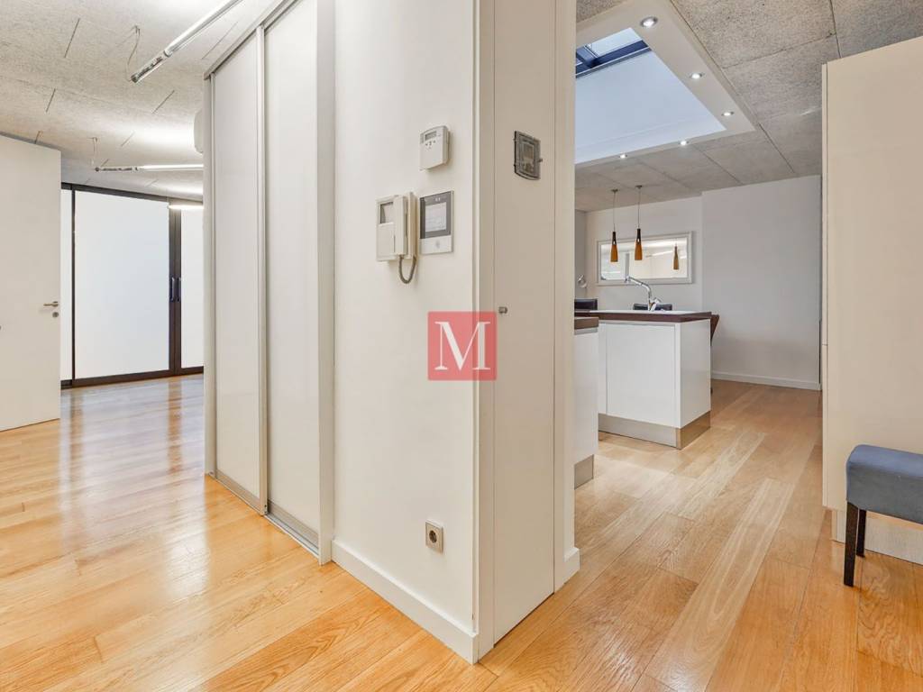 Part of the roof is covered with glass so it gives even more light, and the special part of the apartment is the roof in the glass above the shower cabin.