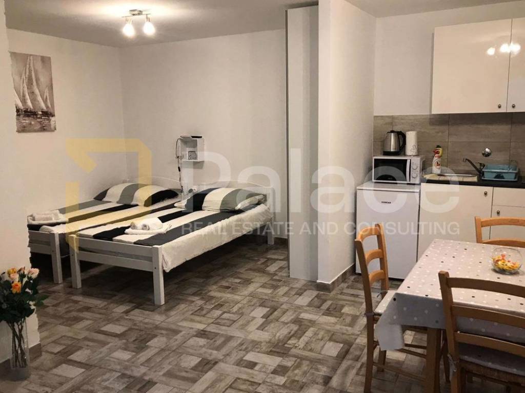 The apartment consists of a kitchen and a room, with a total net floor area of 24.55 m, with the following additional parts on the ground floor: