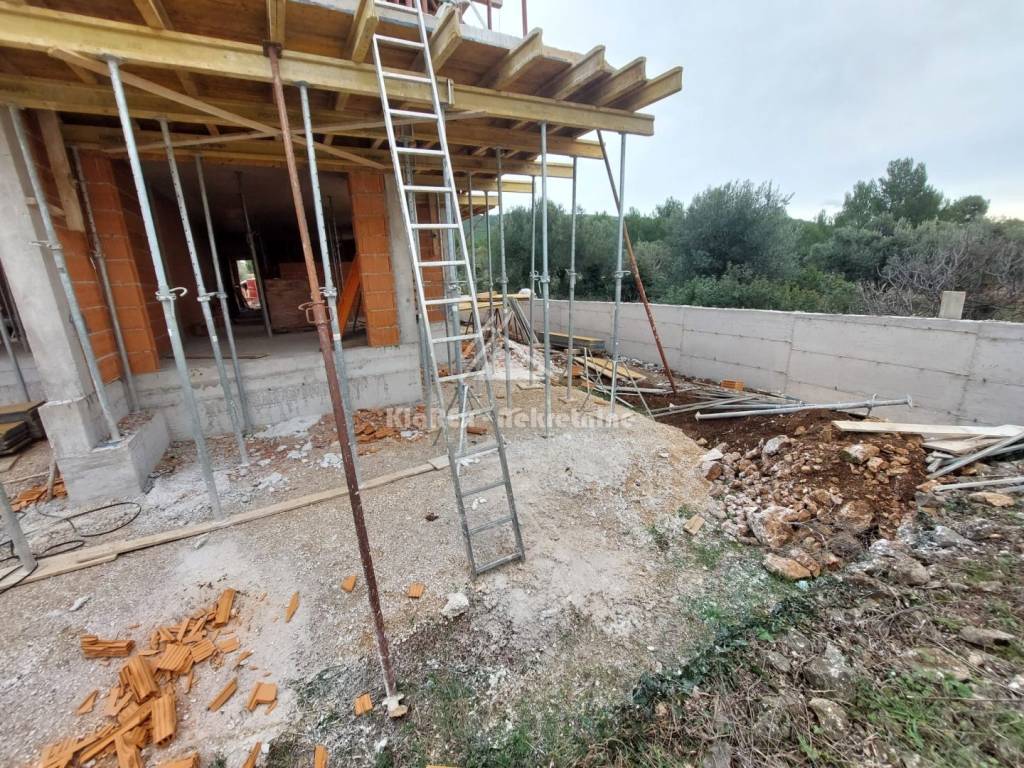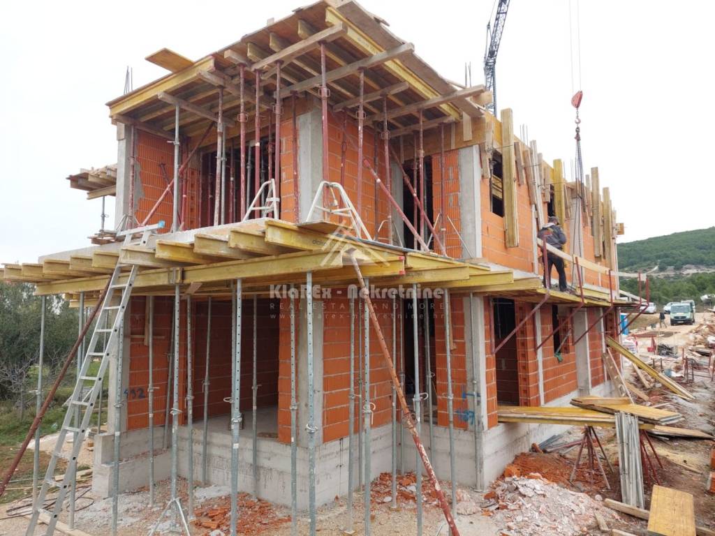 In Tribunj, the Sovlja area, three apartments are being offered for sale in a smaller residential building with a total of four residential units. A final building permit has been issued for the construction of the building and it is currently in the construction phase, or the unfinished phase. The building itself is being built in accordance with modern construction standards, and has a very interesting design and functional layout. The two apartments on the ground floor, one of which has been sold, are classic one-story apartments with associated gardens, while the other two apartments are two-story apartments with associated roof terraces from which there is a beautiful view of the sea and the surrounding area. Among the equipment and materials, we highlight: polystyrene facade, security doors, anthracite-colored PVC joinery, electric roller shutters with mosquito nets, air conditioning in all rooms, high-quality ceramics in all rooms, modern bathroom fixtures, electric underfloor heating in the living room and bathroom. Each apartment has one parking space, and there is also the possibility of purchasing an additional parking space for an additional fee. The planned completion date and move-in date are expected by the end of 2026. Payment dynamics in agreement with the investor. The offer includes: