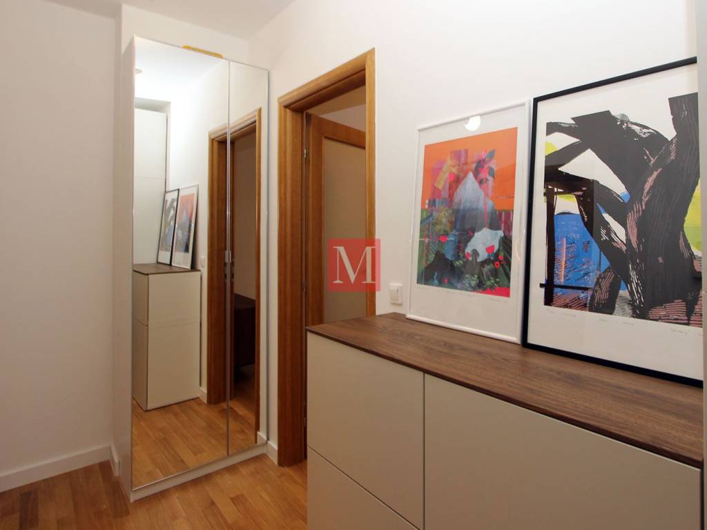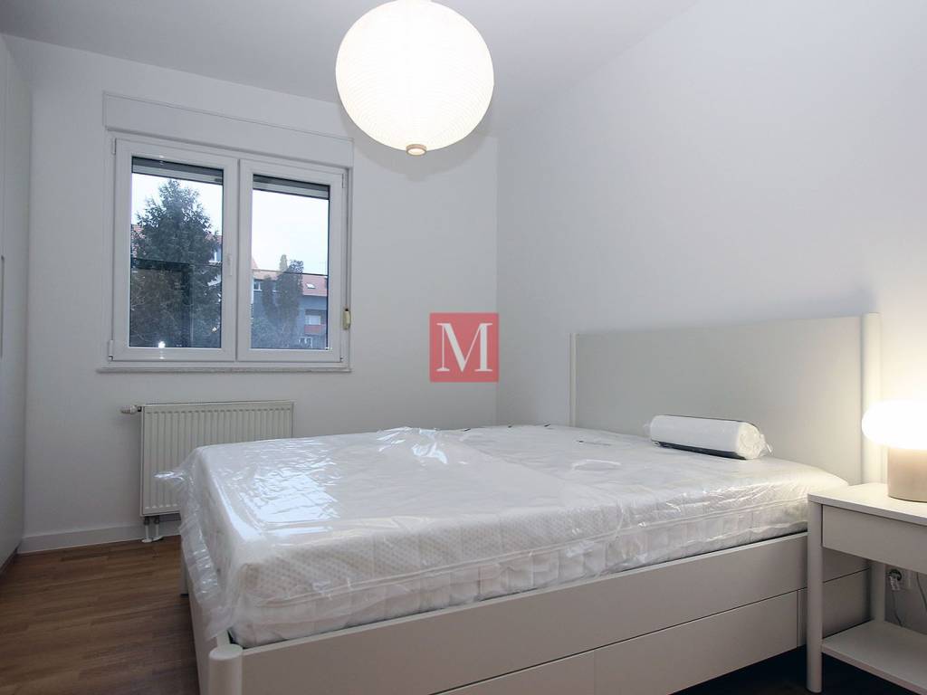 Modern, fully furnished and functional 2-bedroom apartment of 82 m2 on the first floor of a residential building in Remete. The apartment is completely newly renovated and newly equipped. The apartment consists of an entrance hall, kitchen with pantry, spacious living room, two bedrooms, bathroom, guest toilet and terrace. The apartment comes with two parking spaces and a garage. It is located in a quiet and green area of Remete and has excellent connections to the city center. Close to public transport, schools, kindergartens and all necessary amenities. Mandatory deposit in the amount of one month's rent. Minimum lease term of 1 year. Agency fee: 1 month's rent + VAT.