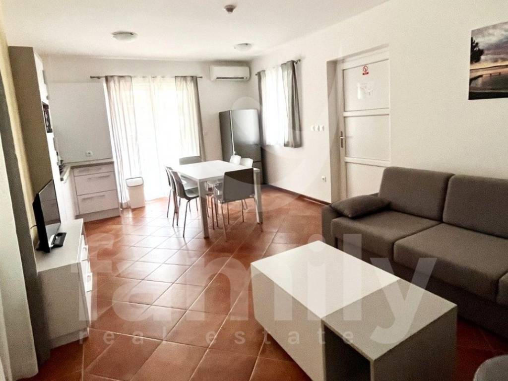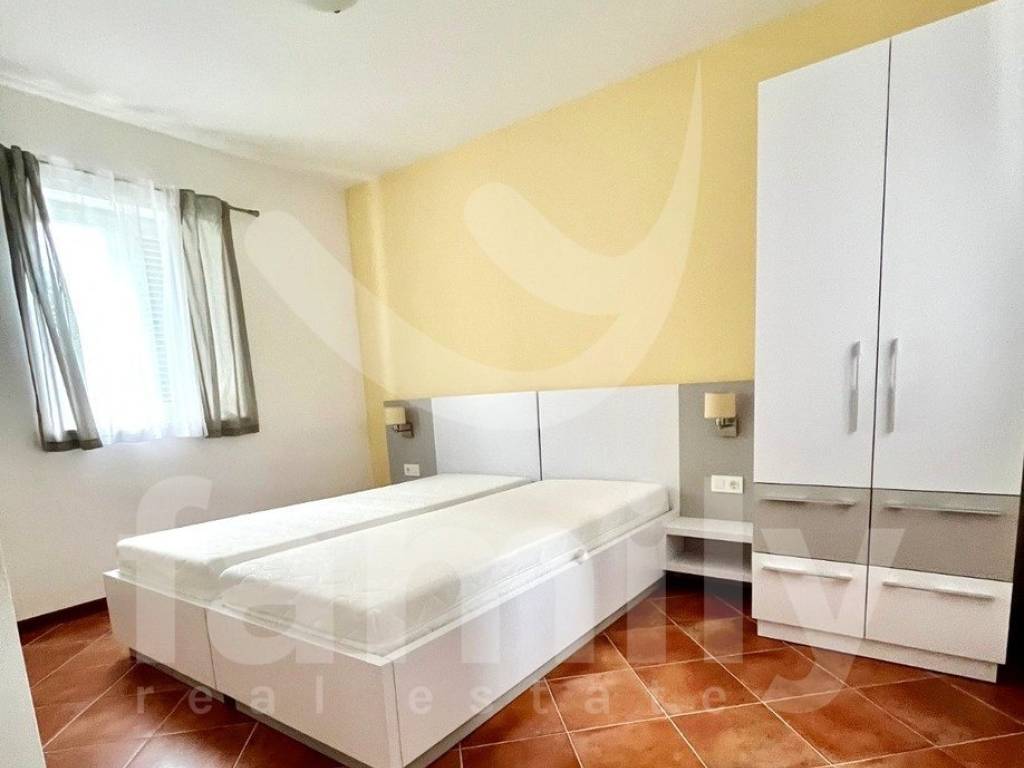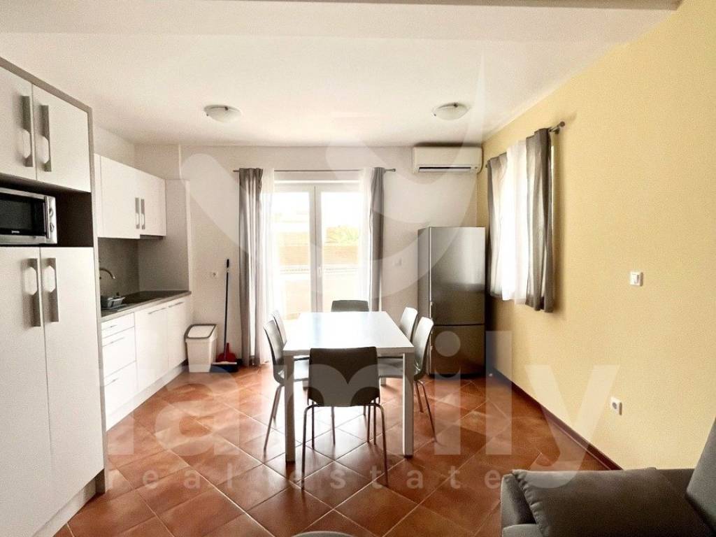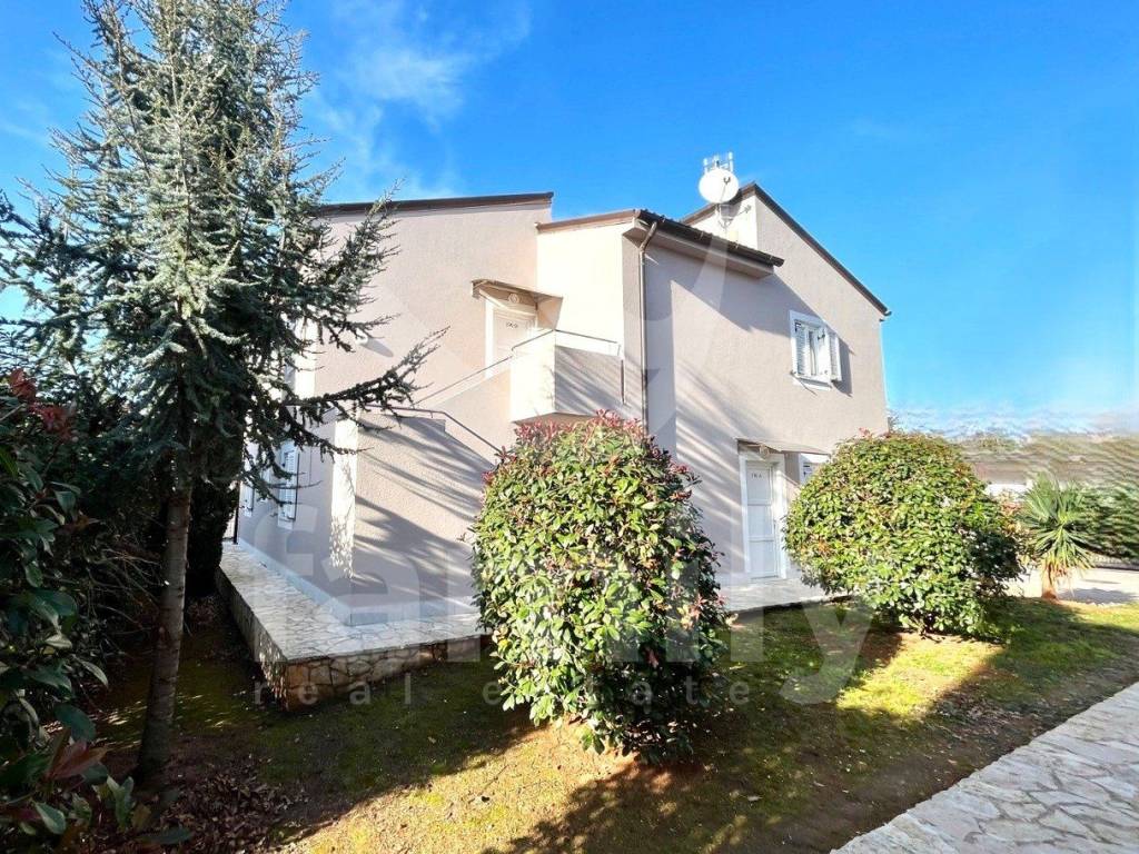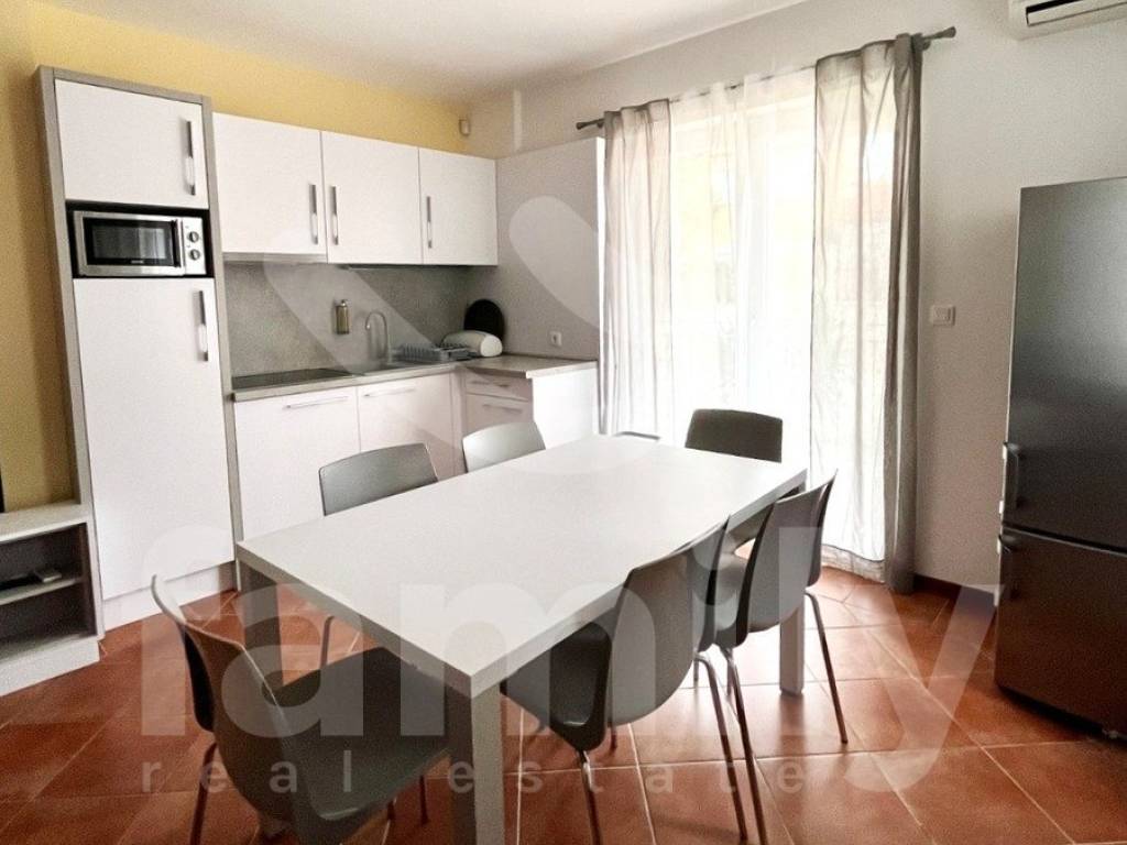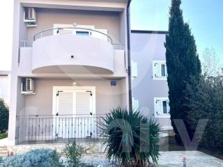 The detached house is located in an extremely sought-after location with a total area of 170 m2. The house consists of two apartments that have separate entrances and are neatly divided into condominiums. The plot of land with a total area of 212 m2 is distributed over a green area and a part intended for two parking spaces. The ground floor apartment with an area of 74 m2 consists of an entrance area, an open-plan kitchen with a dining area and access to the terrace. The property has a beautifully decorated bathroom tiled in ceramics throughout. The bathroom has a living opening, shower, toilets and space for a washing machine. The property has two bedrooms, one of which is larger and extremely spacious with access to a terrace, and the other is slightly smaller but also sunny and comfortable. The floors in the property are completely tiled with ceramic tiles which are in excellent condition. The property is bright and airy, all living openings are PVC white with shutters. Inverter air conditioning is installed in both apartments. The property is fully equipped with quality custom-made furniture and is being sold as is.