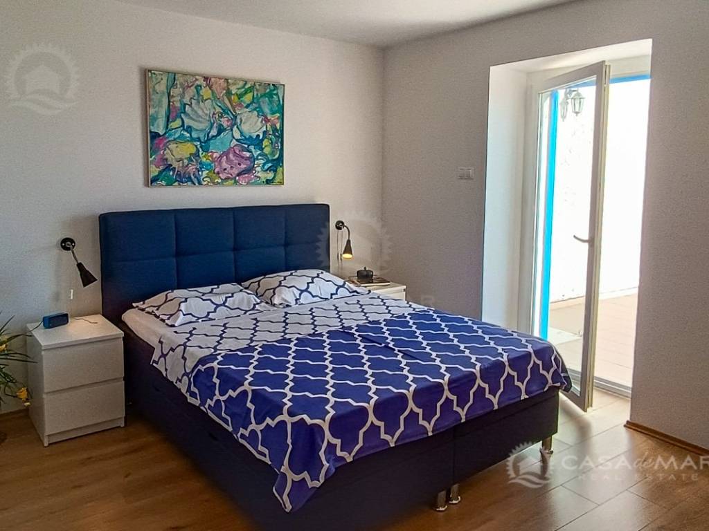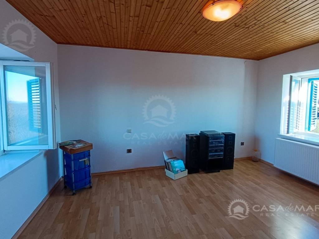 The second floor offers even more space and flexibility: a kitchen with living room and access to a spacious terrace with sea view, two bedrooms, and a bathroom. This floor can be used as a separate apartment, offering great potential for tourist rental.