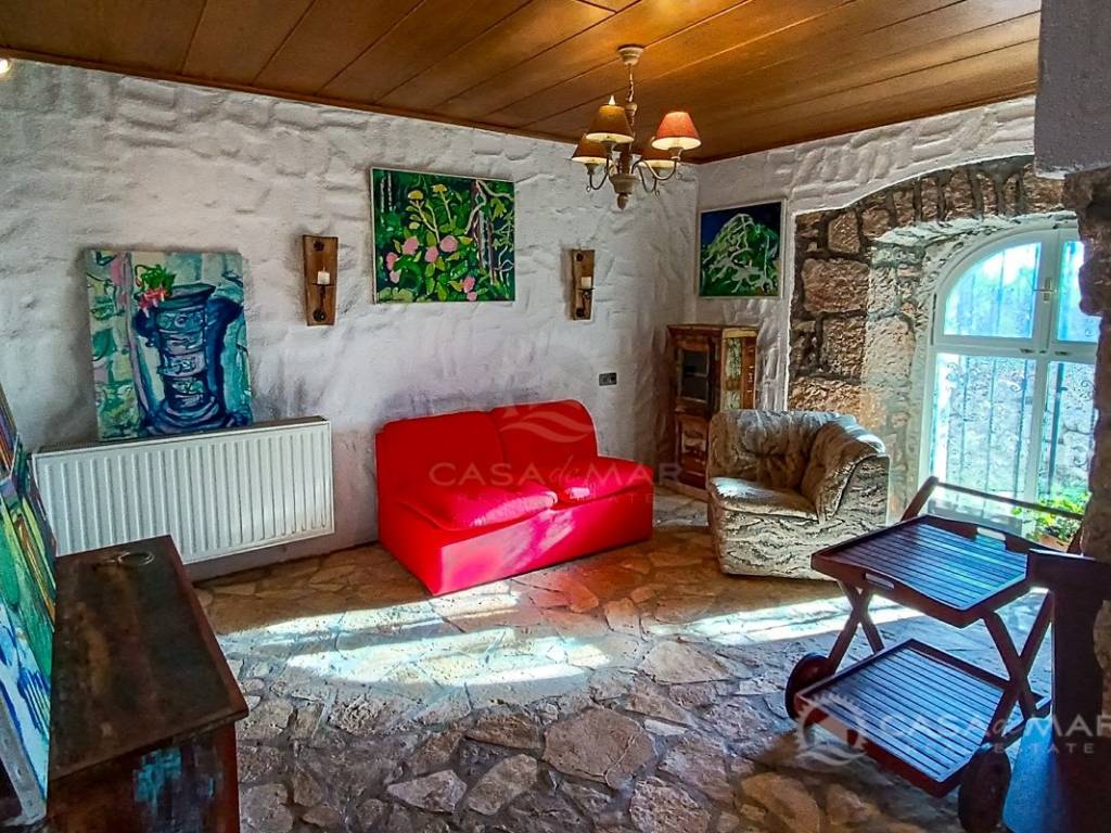 For sale: a renovated detached stone house in traditional coastal style, located in a peaceful, green area just 4 km from the sea. The house has a surface area of 260 m² and sits on a plot of 680 m². It extends over three floors: ground floor, first floor, and high attic.
