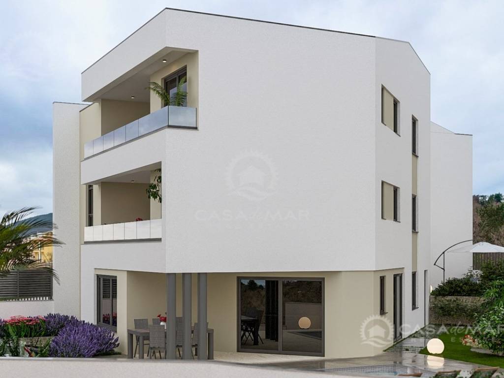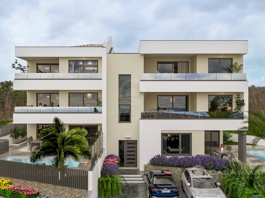 For sale is a modern apartment on the second floor of a new residential building in Vrbnik, in a highly attractive location just 350 meters from the sea.
