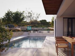 House S2 with a net usable area of ​​138.98 m2 consists of two floors: ground floor + 1st floor. The ground floor has a covered entrance, entrance hall, storage room, toilet, kitchen with dining room and access to a covered terrace and garden. An internal staircase leads to the 1st floor, which consists of a hallway, three bedrooms, a wardrobe, two bathrooms and a covered terrace with a sea view. The house has two parking spaces. There is a possibility of building a swimming pool.