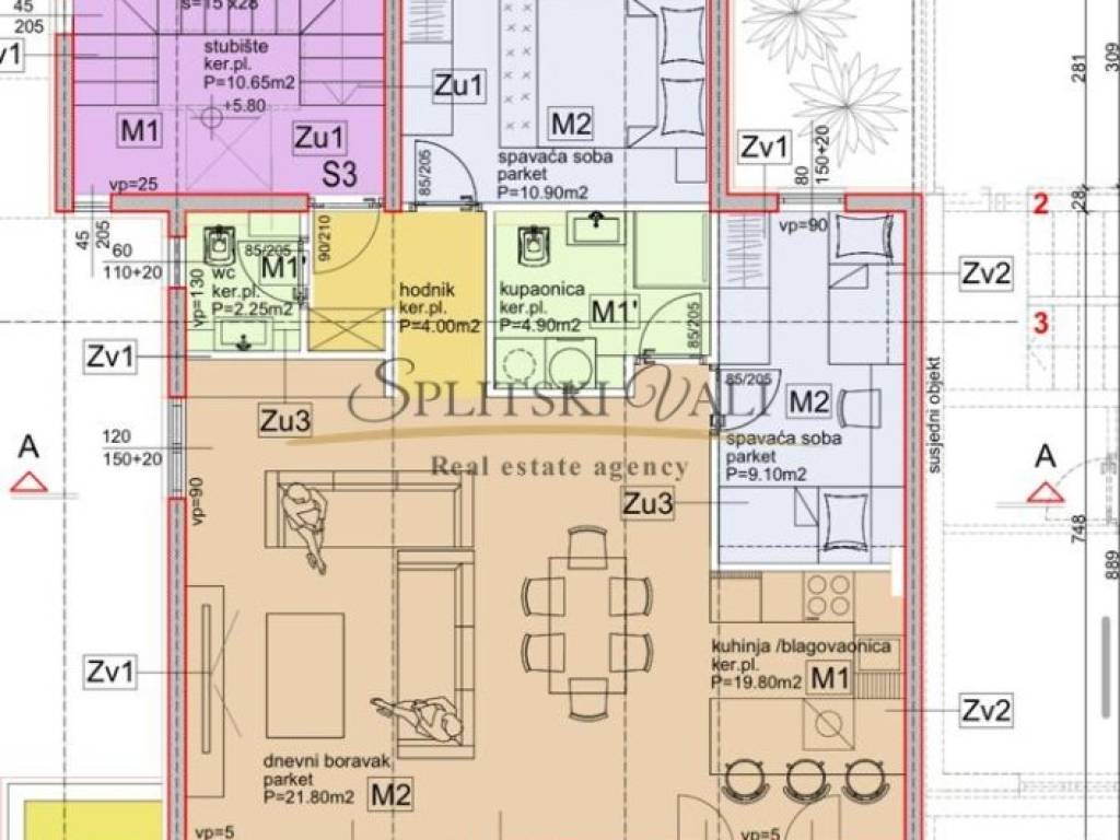 Stan ima 73 m stambene površine + 11 m terase te 1 parkirno mjesto uključeno u cijenu.